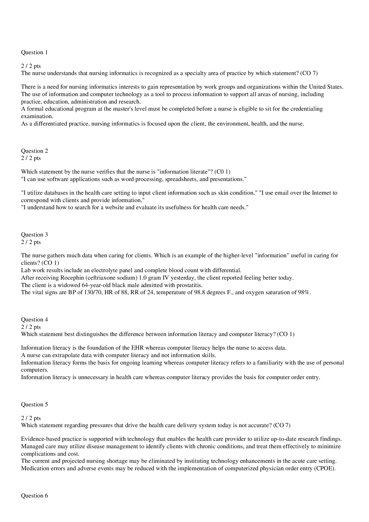 *NURSING > EXAM REVIEW > HESI Patient Review: Patients at Risk _ Complete solutions 2020/2021 SOLUTION 100% CORRECT ANSWERS AID GRADE A+