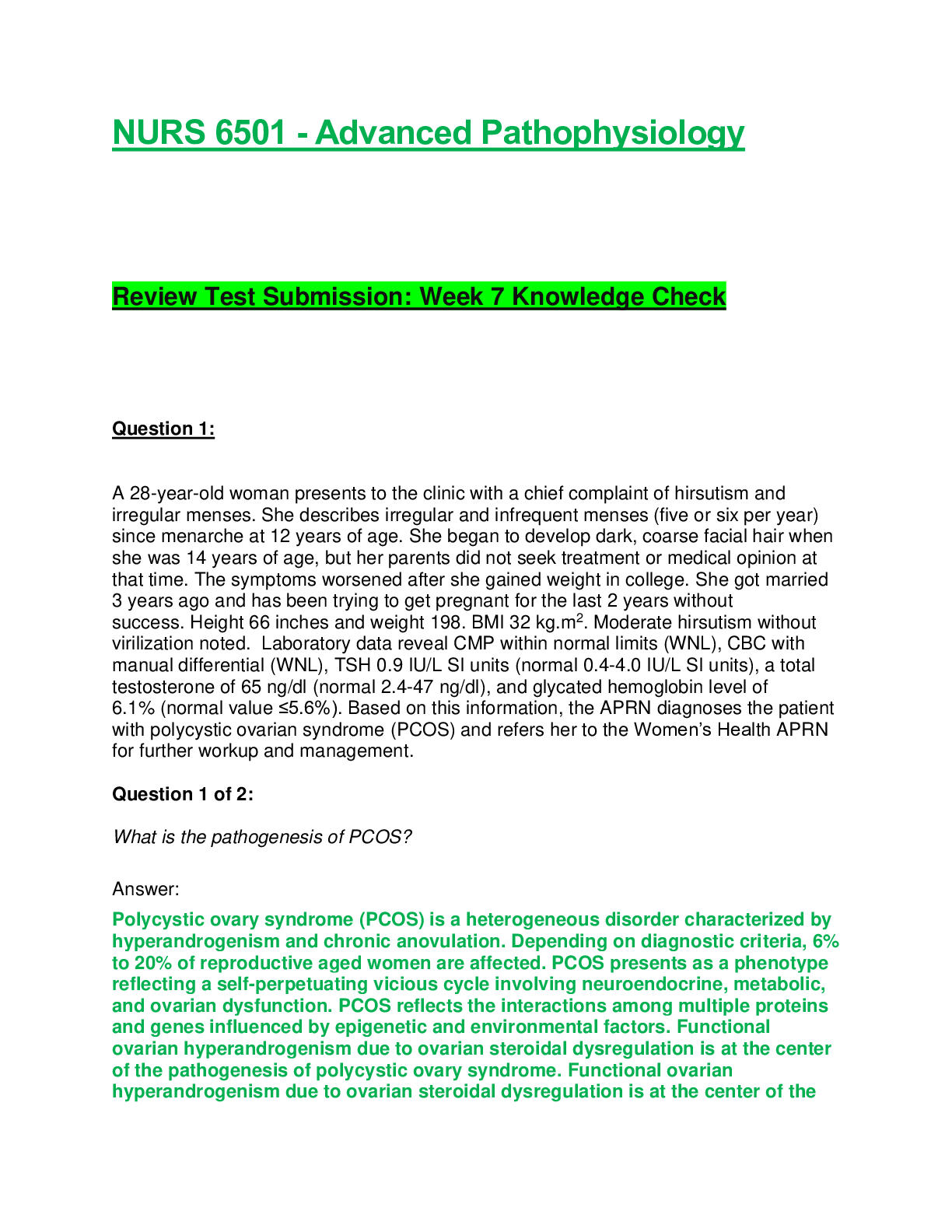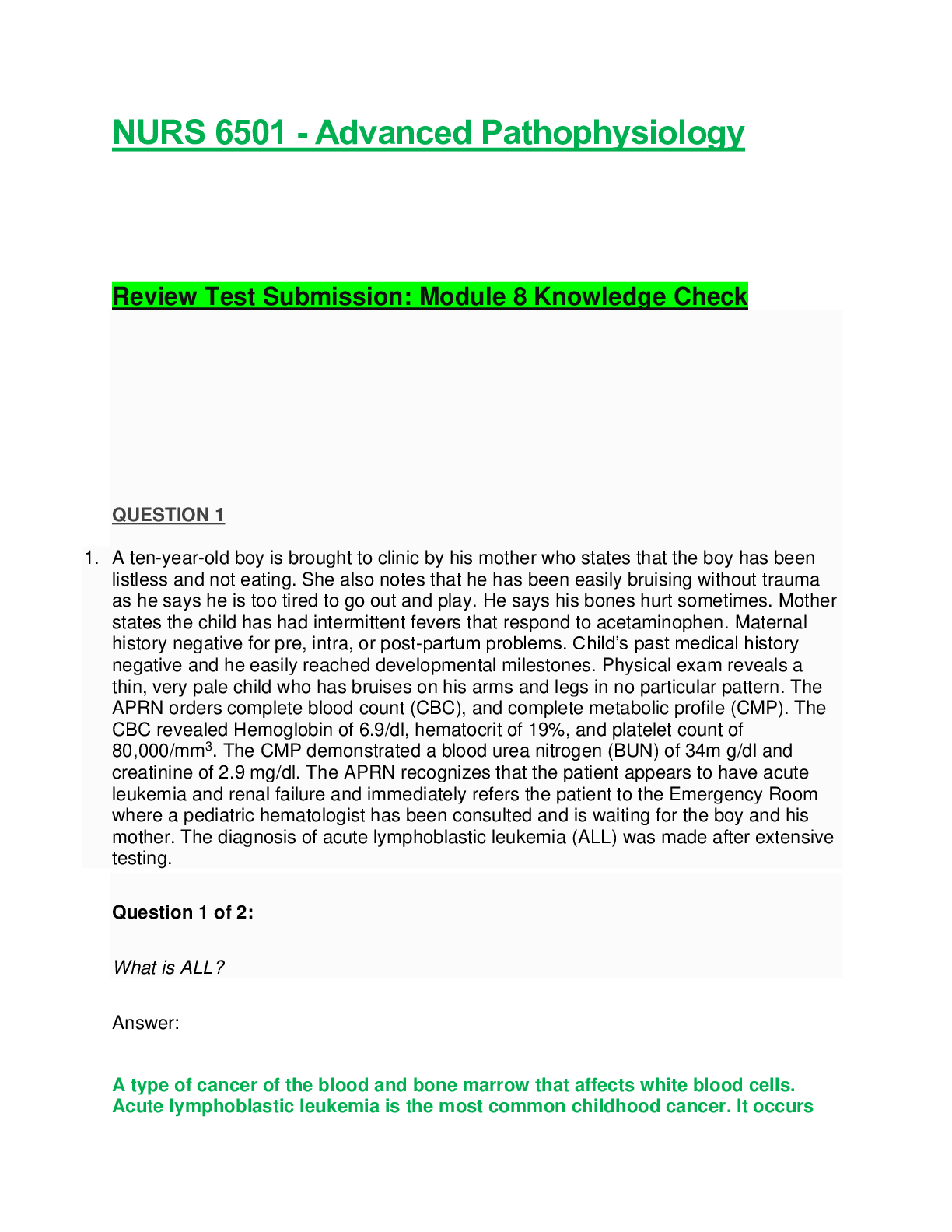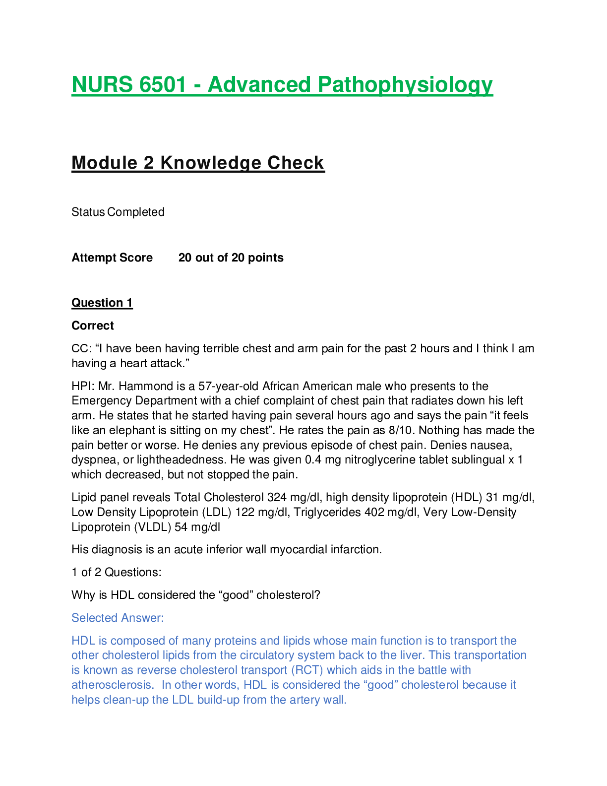 *NURSING > EXAM REVIEW > NURS 6501 / NURS6501: Advanced Pathophysiology - Module 2 Knowledge Check (Latest Update) Walden University