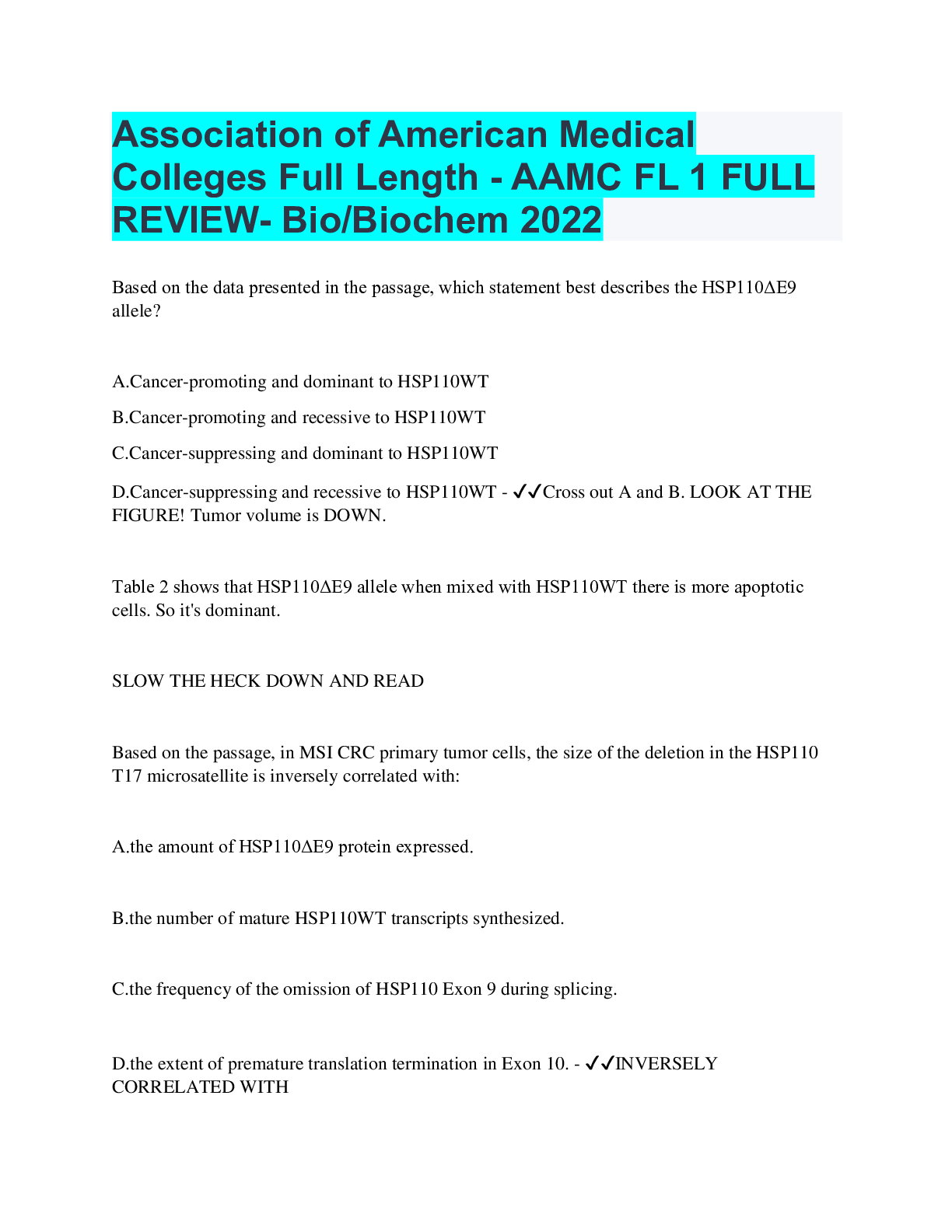 BioChemistry > EXAM REVIEW > Association of American Medical Colleges Full Length - AAMC FL 1 FULL REVIEW- Bio/Biochem 2022