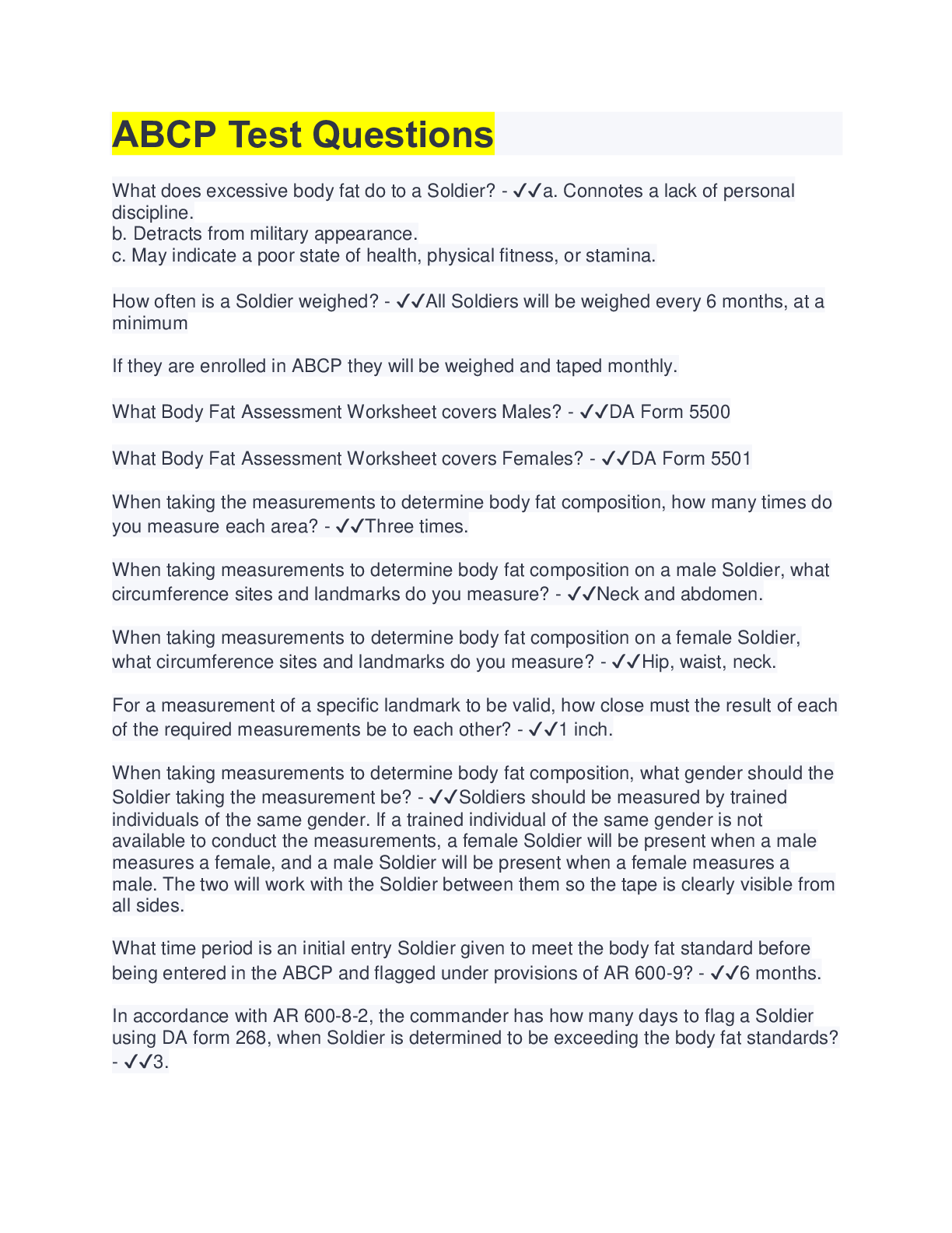 ManagementEXAM REVIEW  > ABCP Test Questions WITH 100% CORRECT ANSWERS/SOLUTIONS