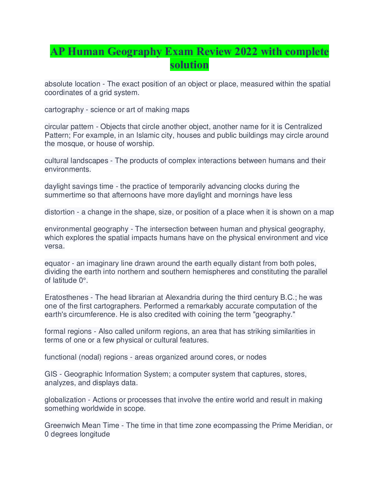 GeographyEXAM REVIEW  > AP Human Geography Exam Review Latest questions with complete solutions