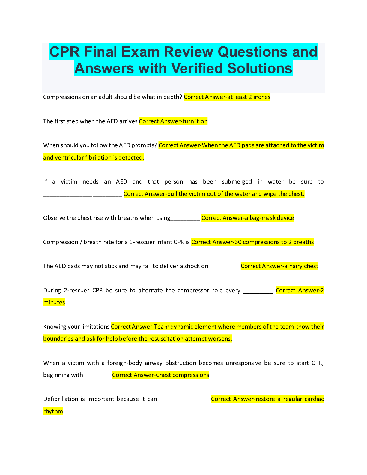 *NURSINGEXAM REVIEW  > CPR Final Exam Review Questions and Answers with Verified Solutions