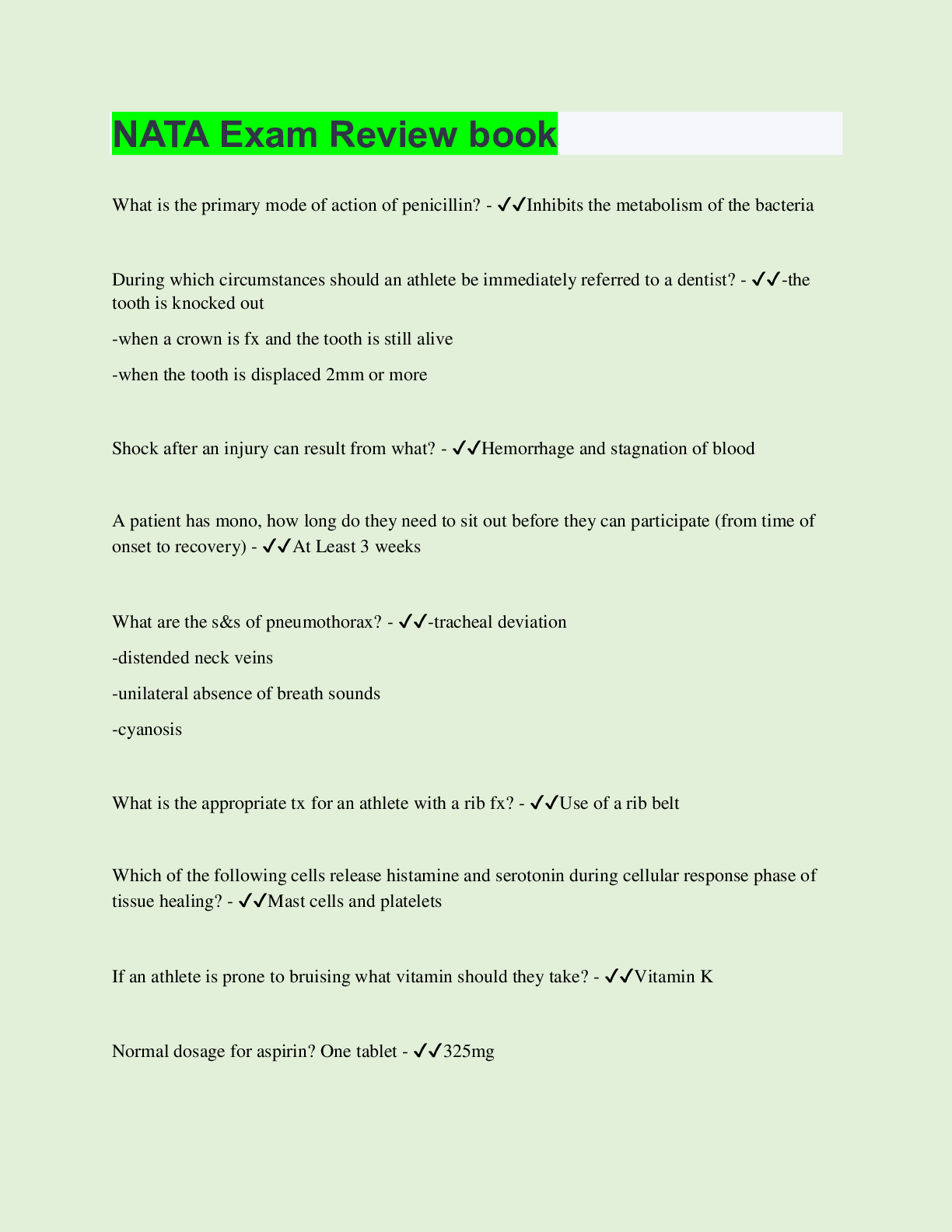Health Care > EXAM REVIEW > NATA Exam Review book | 85 Questions with 100% Correct Answers | Updated & Verified