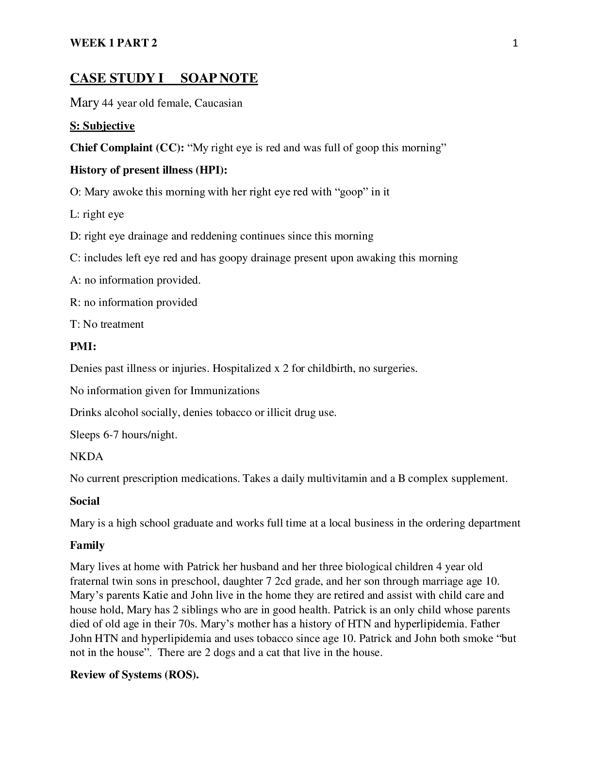 *NURSING > SOAP NOTE > Chamberlain College of Nursing| NR 511| CASE STUDY I SOAP NOTE Mary 44 year old female, Caucasian| Complete Solutions