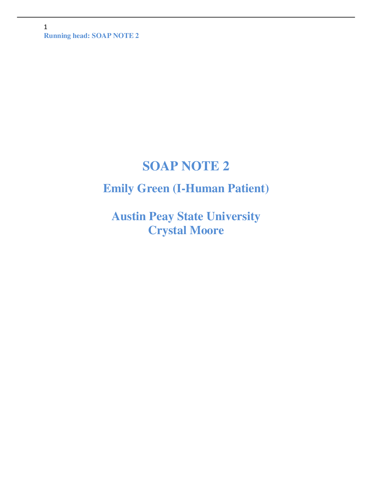 *NURSING > SOAP NOTE > SOAP NOTE 2 Emily Green (I-Human Patient) Case 2021| Ultimate Guide for Top Grade Score