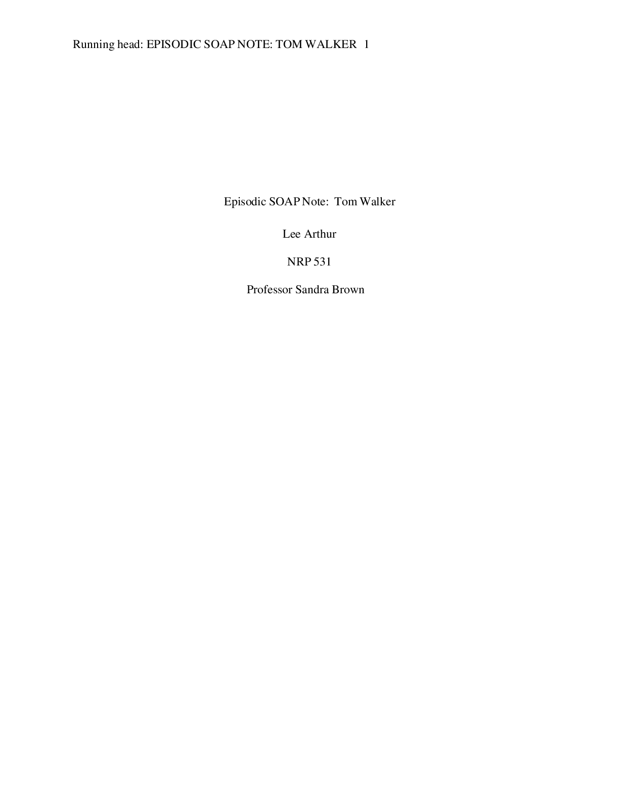 *NURSING > SOAP NOTE > UNIVERSITY OF PHOENIX NRP 531 EPISODIC SOAP NOTE: TOM WALKER COMPLETE SOLUTIONS