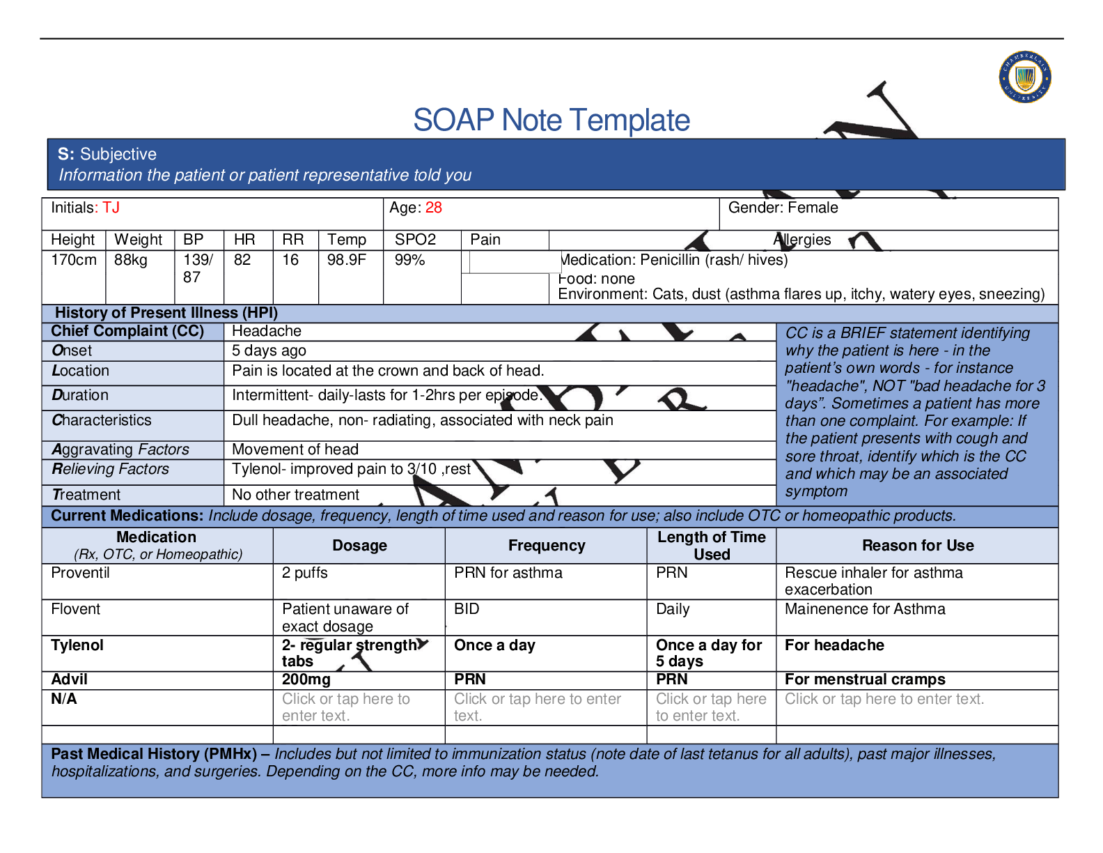 *NURSING > SOAP NOTE > Chamberlain College of Nursing| NR 511 Week 1 SOAP NOTE| 2021 Complete Solutions