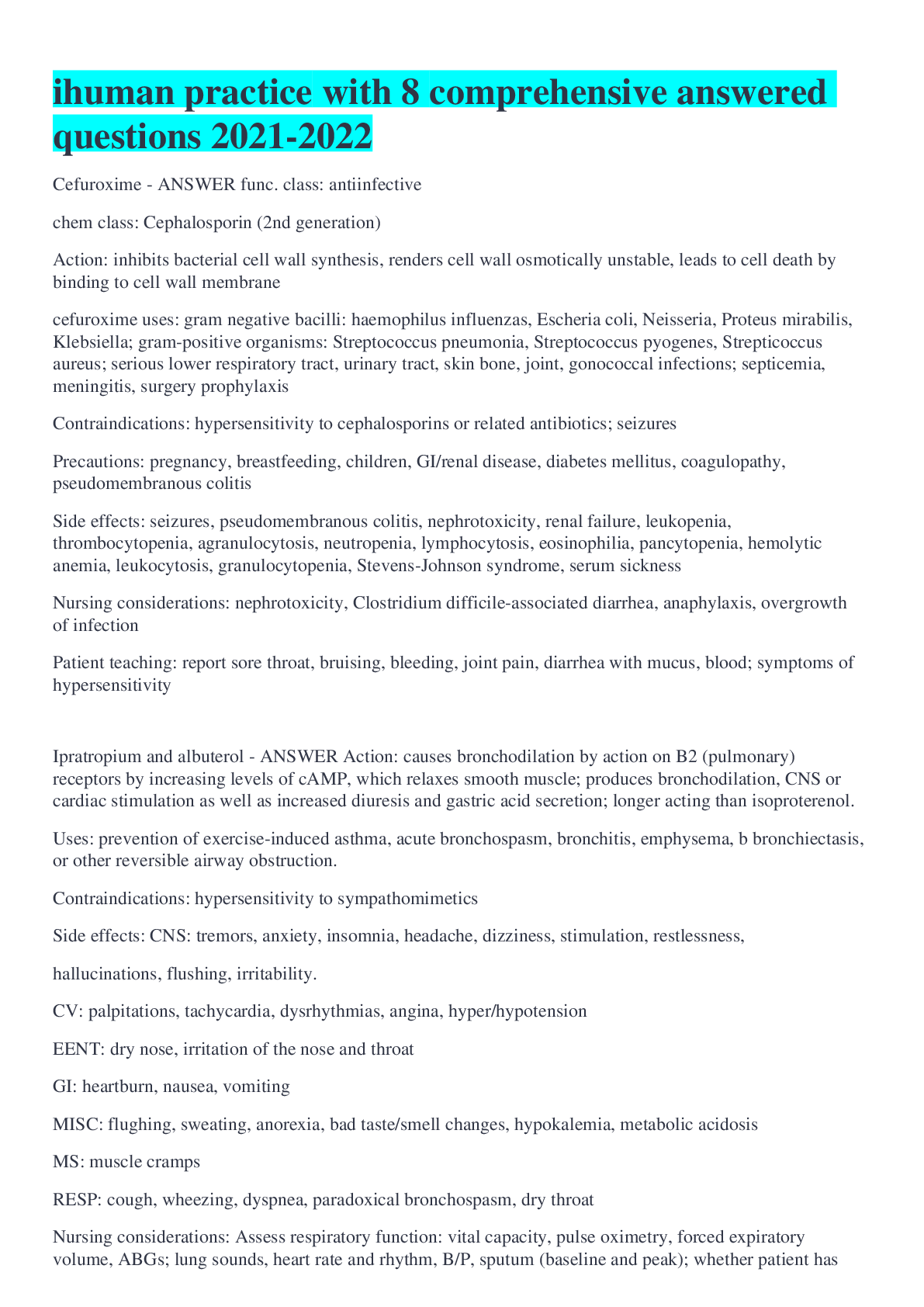 Health Care > iHuman Case Studies > ihuman practice with 8 comprehensive answered questions 2021-2022