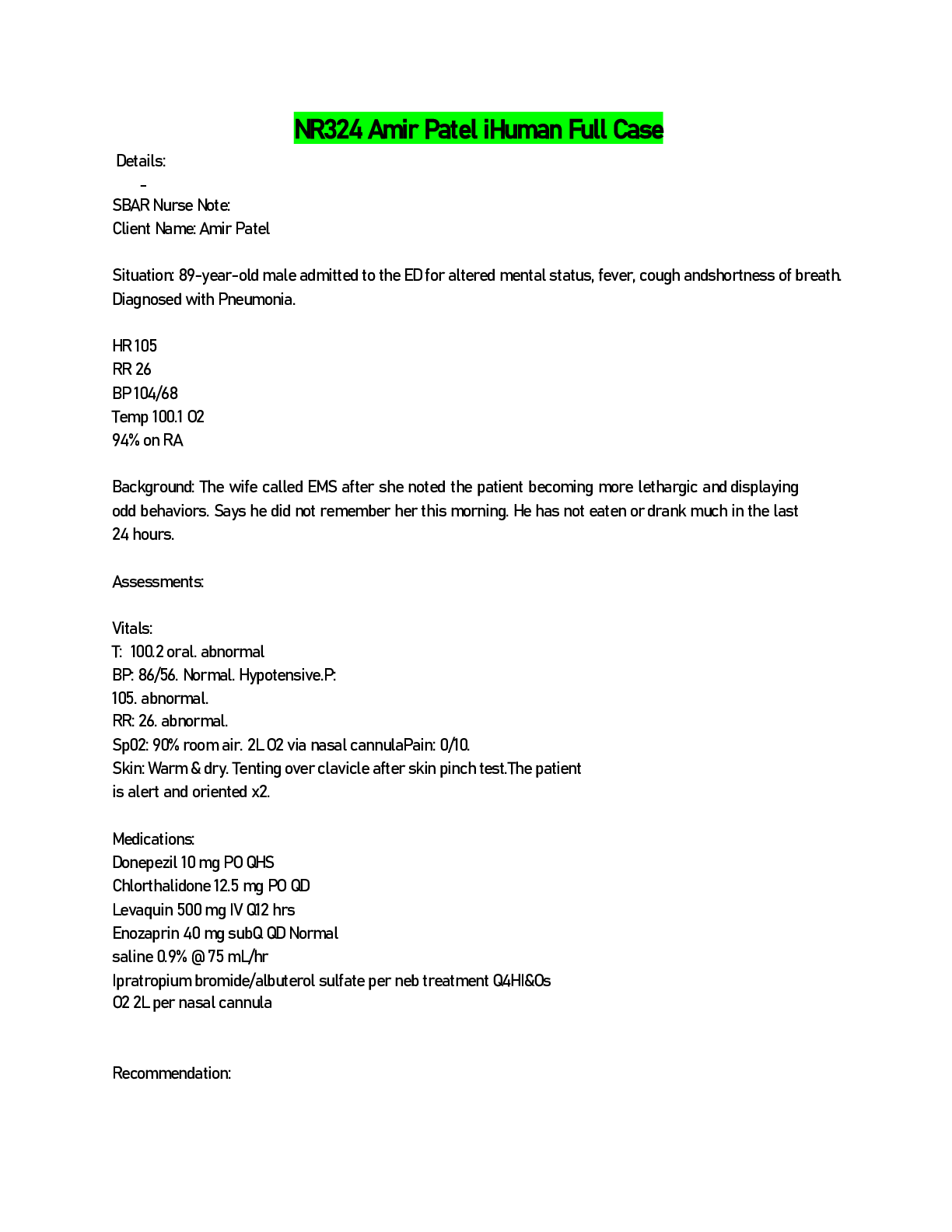 *NURSING > iHuman Case Studies > NR324 Amir Patel iHuman Full Case