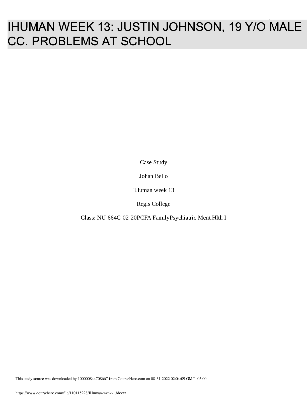 *NURSING > iHuman Case Studies > IHuman Week 13: Justin Johnson, 19 yrs Old Male CC: Problems at school