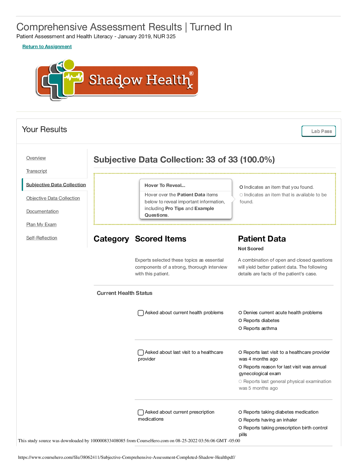 *NURSING > SHADOW HEALTH > Shadow Health Questions and Answers Latest 2022