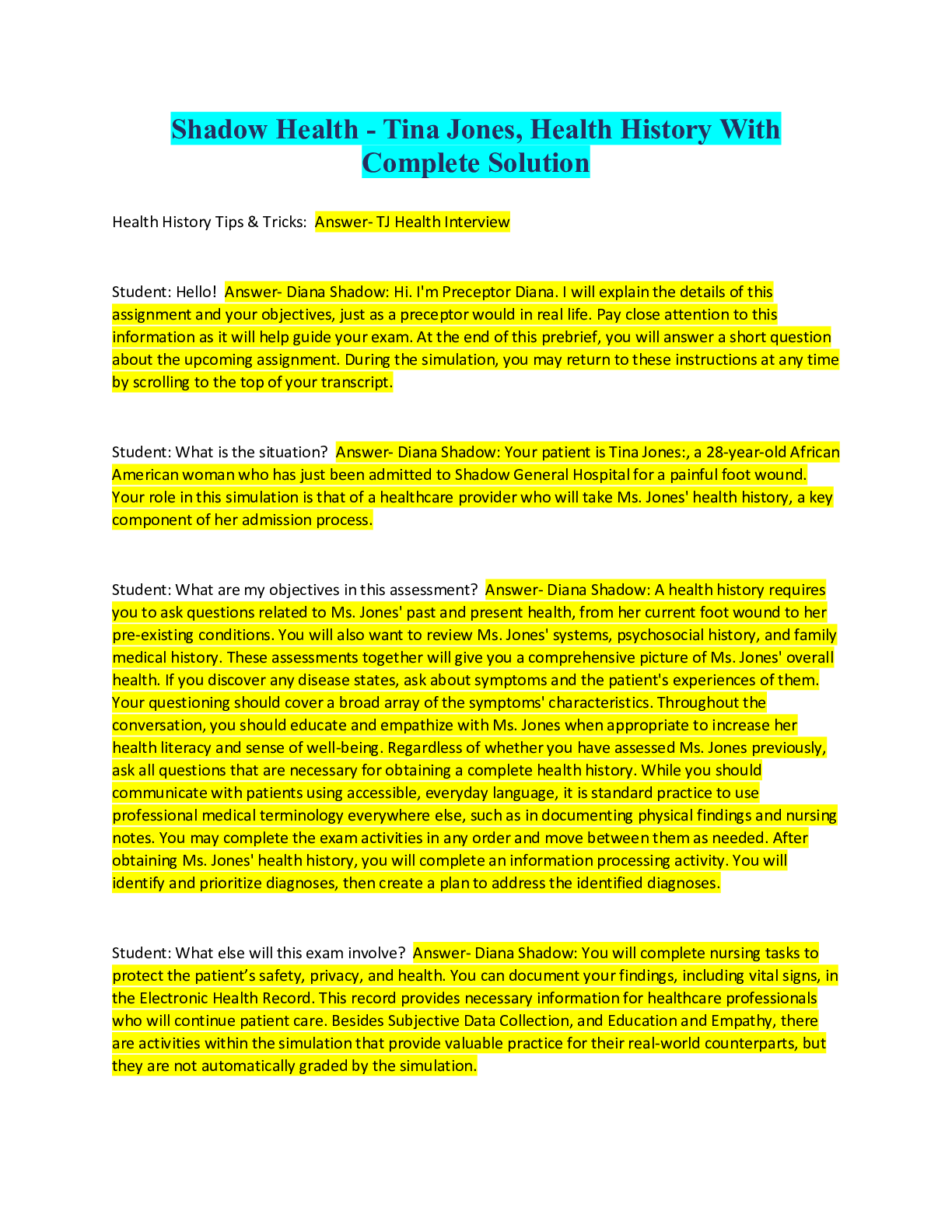 *NURSING > SHADOW HEALTH > Shadow Health - Tina Jones, Health History With Complete Solution