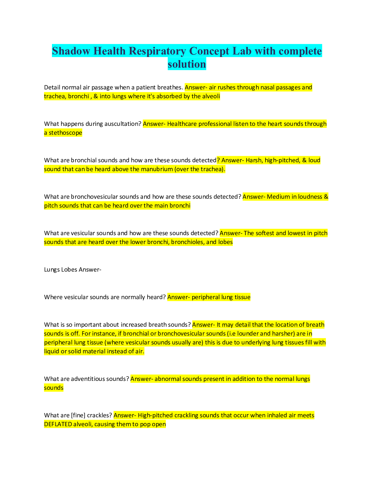 *NURSING > SHADOW HEALTH > Shadow Health Respiratory Concept Lab with complete solution