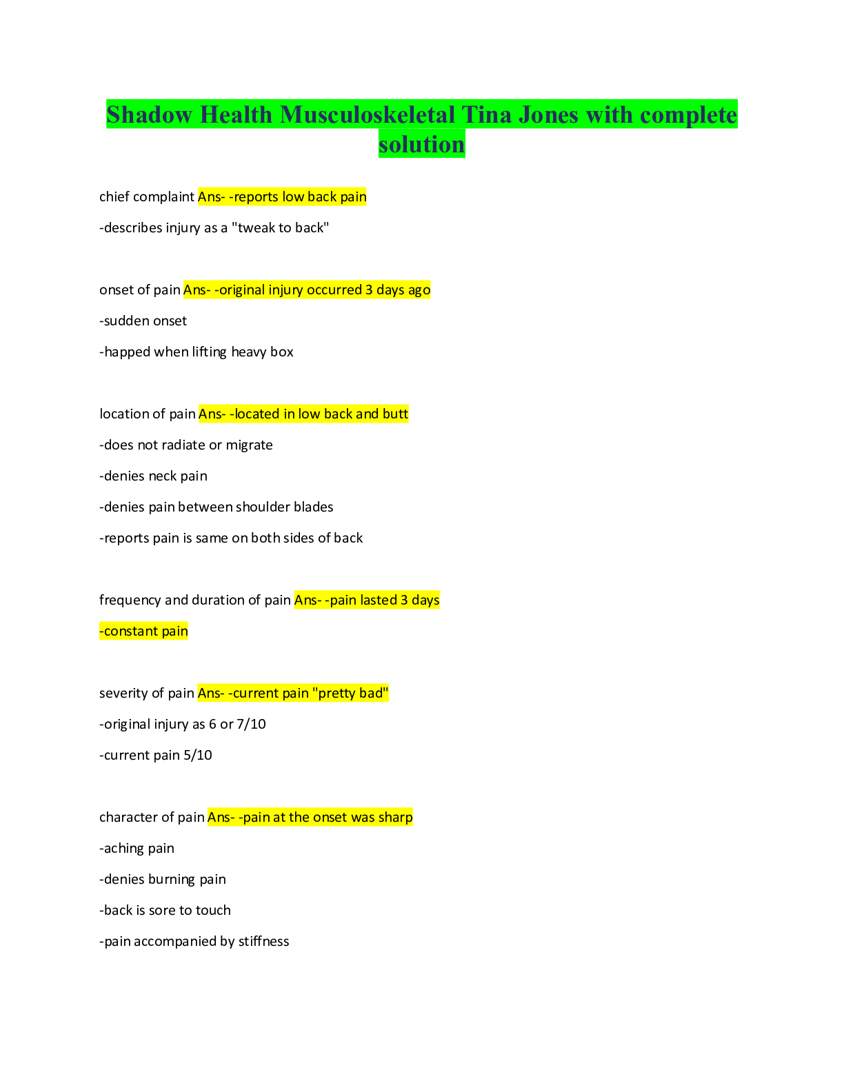 *NURSING > SHADOW HEALTH > Shadow Health Musculoskeletal Tina Jones with complete solution
