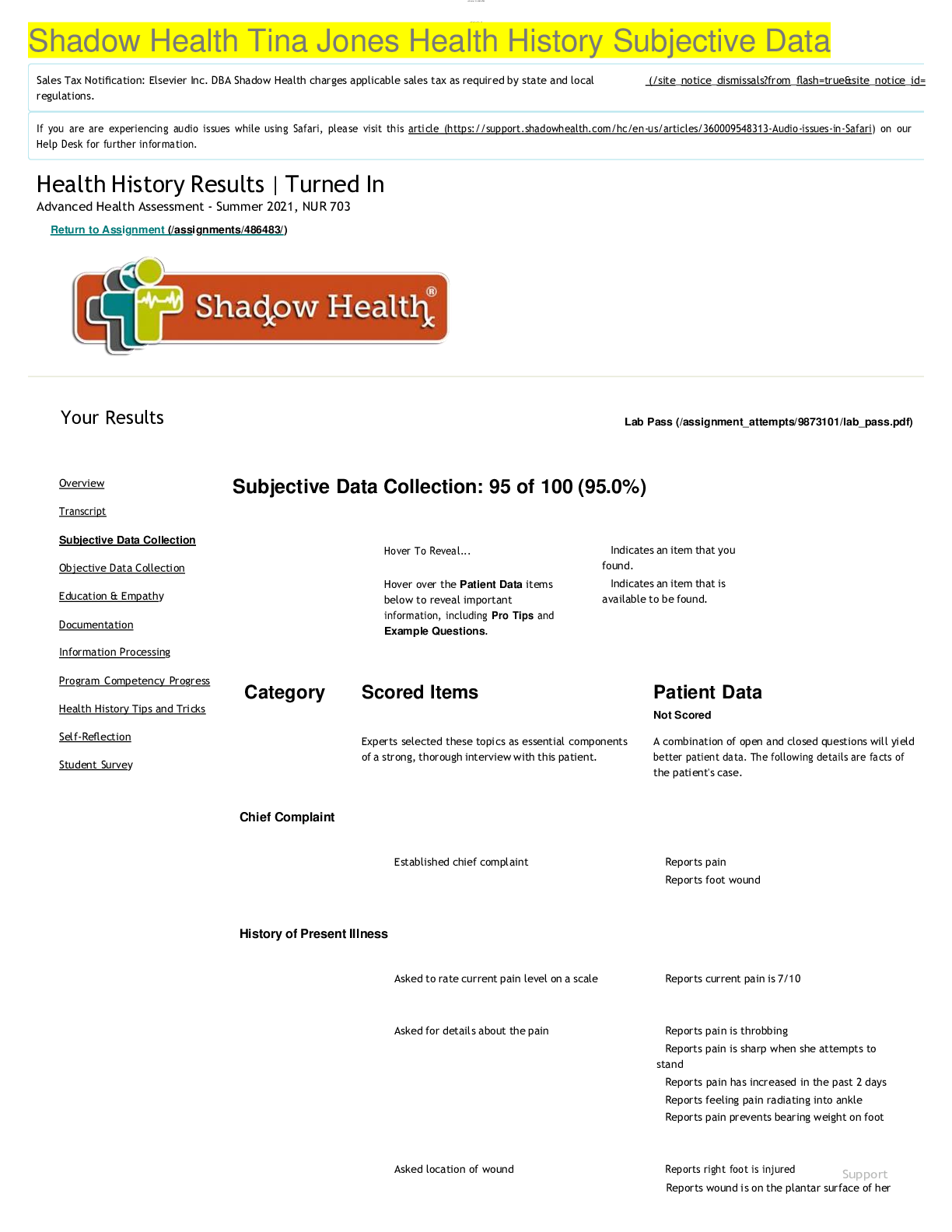 Health Care > SHADOW HEALTH > (CASE STUDY) Tina Jones History Week 1 Debriefing Documentation; Identifying Data And Reliability