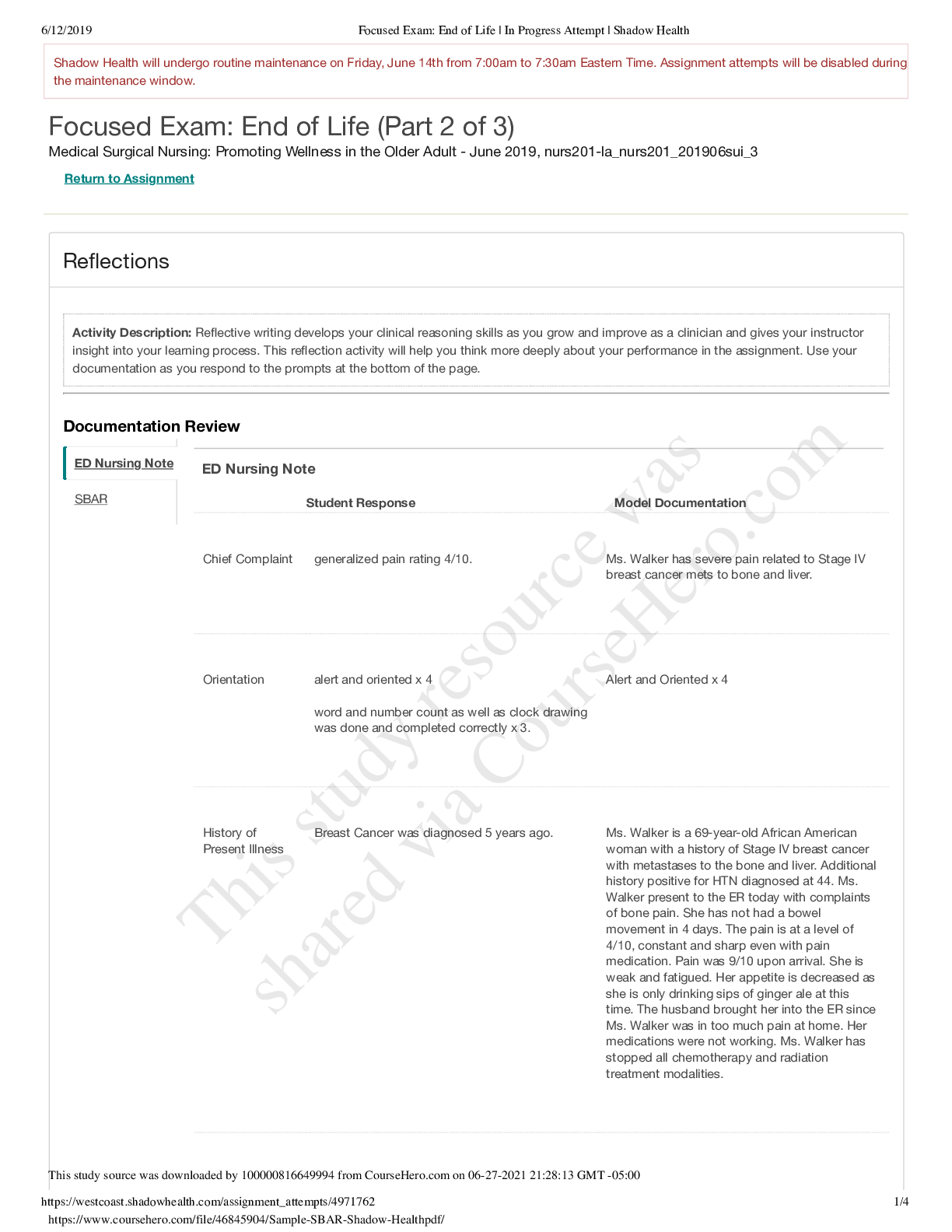 *NURSING > SHADOW HEALTH > SHADOW HEALTH / END OF LIFE IN PROGRESS (LATEST, 2021)