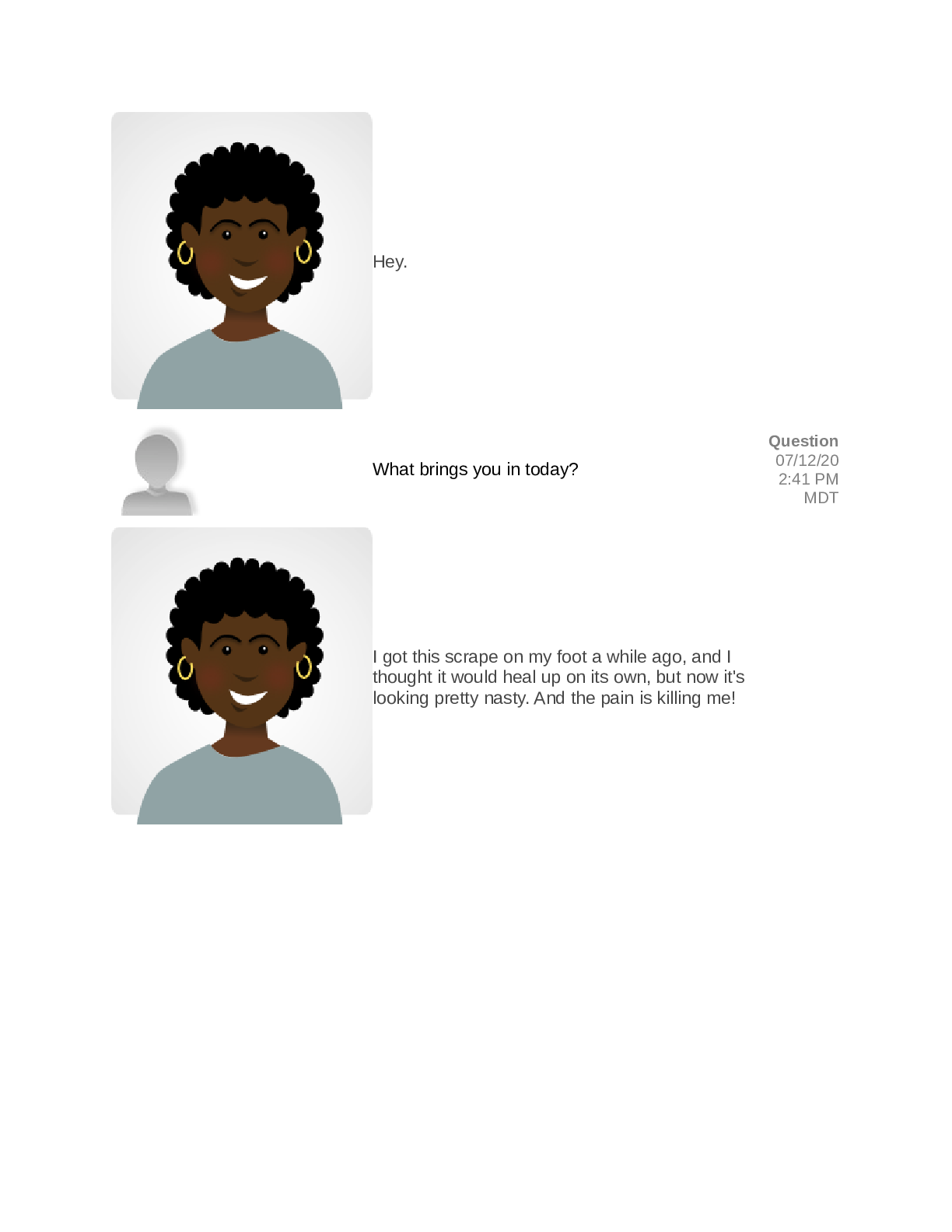 *NURSING > SHADOW HEALTH > RNSG 1301 : Pediatric GAS Pharyngitis Shadow Health (Sophia Hadad)- Transcript