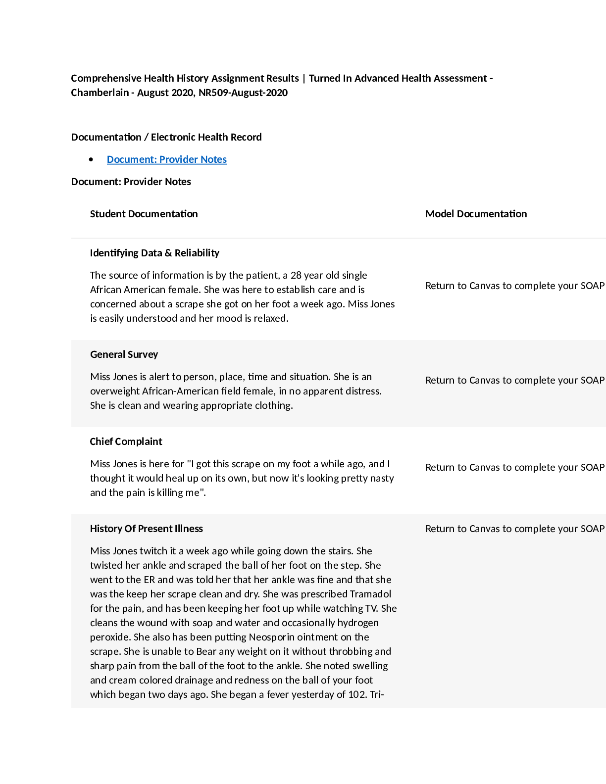 *NURSING > SHADOW HEALTH > NR 661 Shadow Health; Tina Jones Comprehensive Assessment (GRADED)