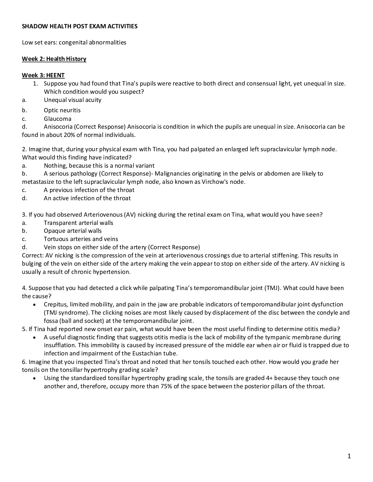 *NURSING > SHADOW HEALTH > SHADOW HEALTH POST EXAM ACTIVITIES Low set ears: congenital abnormalities / SHADOW HEALTH POST EXAM ACTIVITIES TINA, spring 2021 all the correct responses.