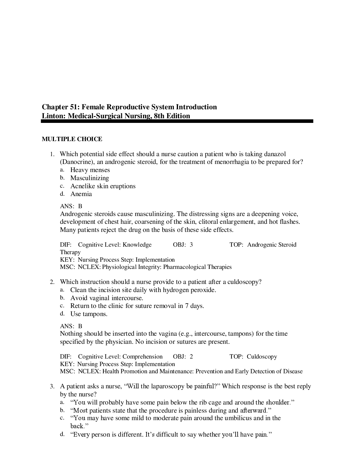Medical Surgical NursingTEST BANKS  > Comprehensive Test Bank Medical Surgical Nursing (8th Edition, Chapters 51–54)