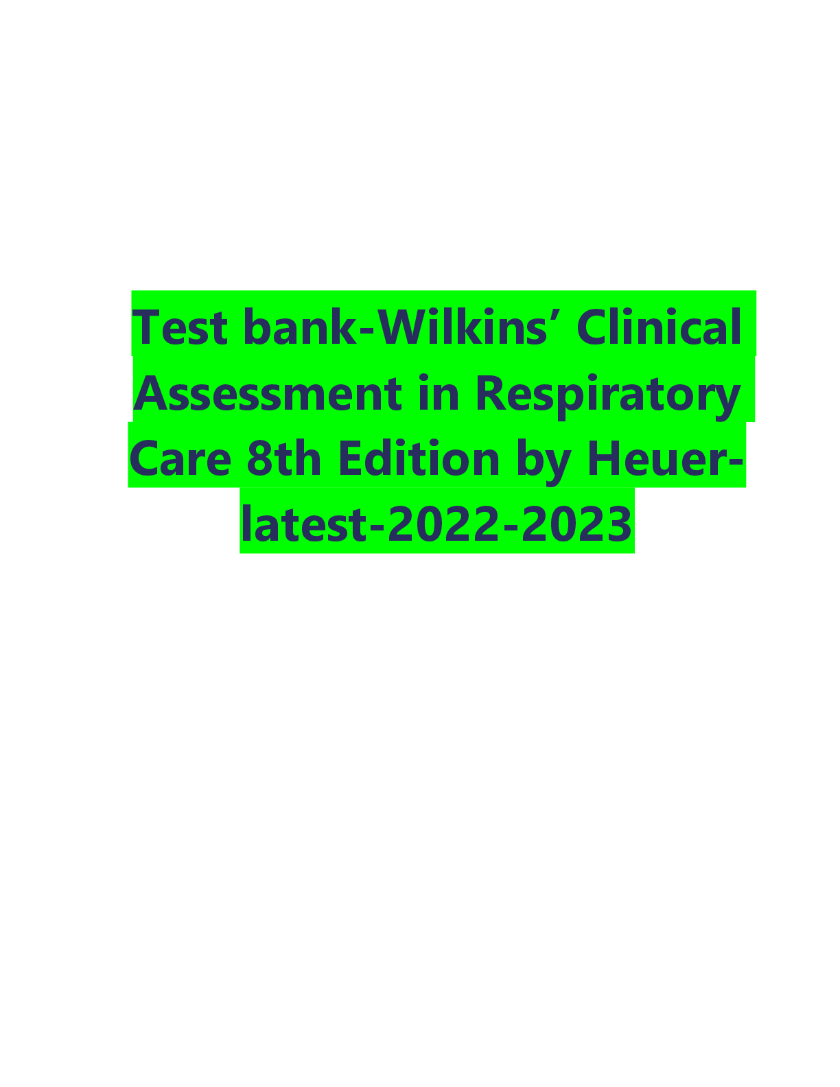 Education > TEST BANKS > TEST BANK Wilkins Clinical Assessment in Respiratory Care 8th Edition Heuer