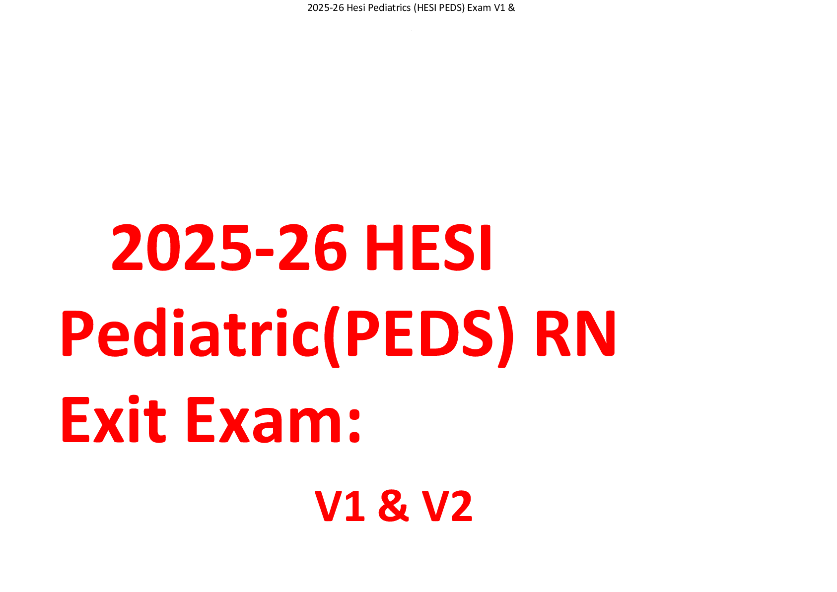 Hesi Pediatrics Peds > TEST BANKS > 2025-26 HESI Pediatric (PEDS) RN Exit Exam: V1 & V2