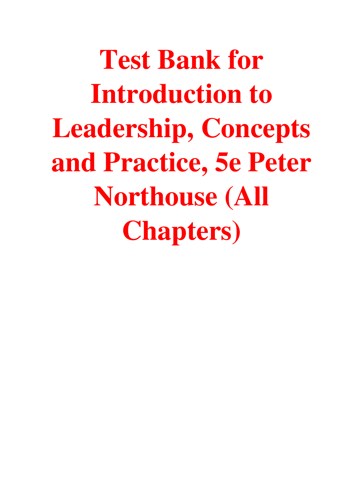 EducationTEST BANKS  > TEST BANK FOR INTRODUCTION TO LEADERSHIP CONCEPTS AND PRACTICE 5TH EDITION BY PETER G. NORTHOUSE