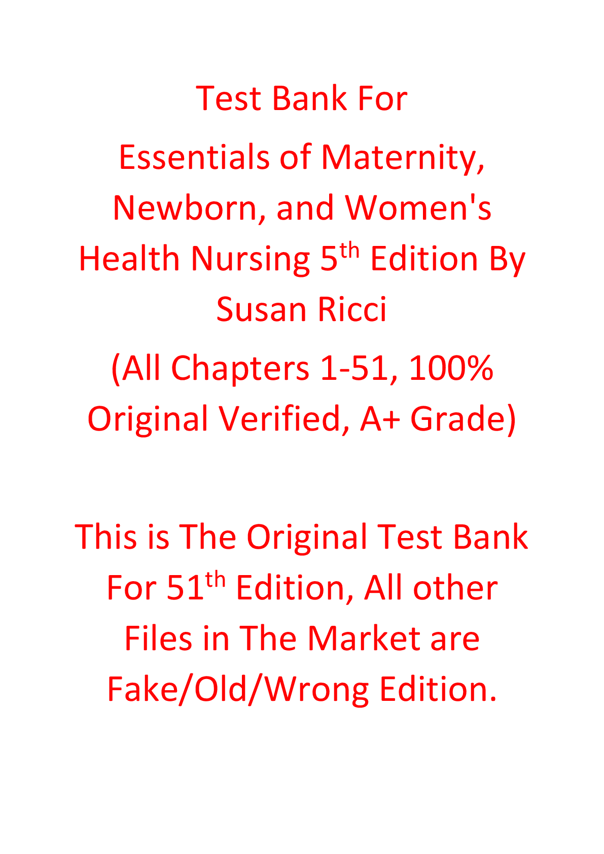 Health Care > TEST BANKS > Test Bank For Essentials of Maternity, Newborn, and Women's Health Nursing 5e Susan Ricci (LWW)