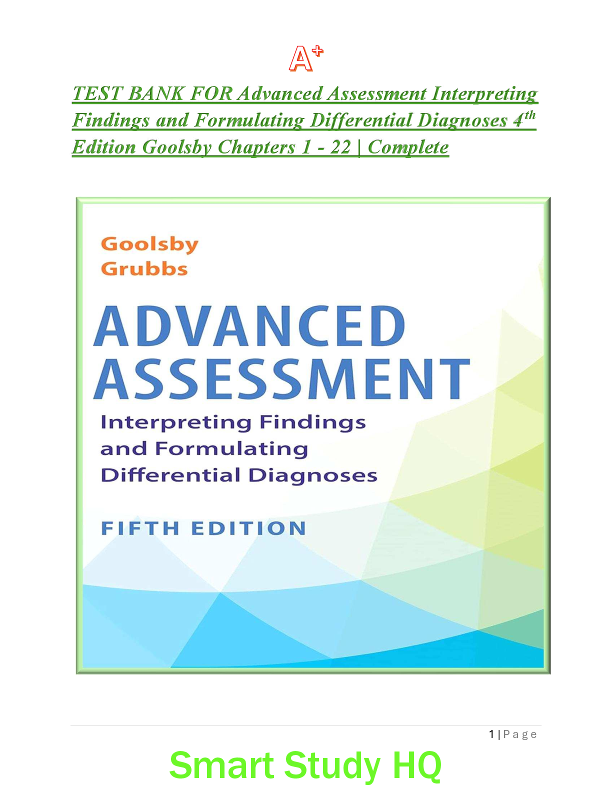 *NURSING > TEST BANKS > TEST BANK FOR Advanced Assessment Interpreting Findings and Formulating Differential Diagnoses 4th Edition Goolsby Chapters 1 - 22 | Complete