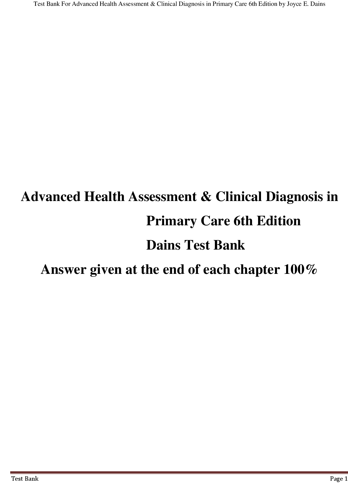 *NURSING > TEST BANKS > Advanced Health Assessment & Clinical Diagnosis in Primary Care 6th Edition Dains Test Bank
