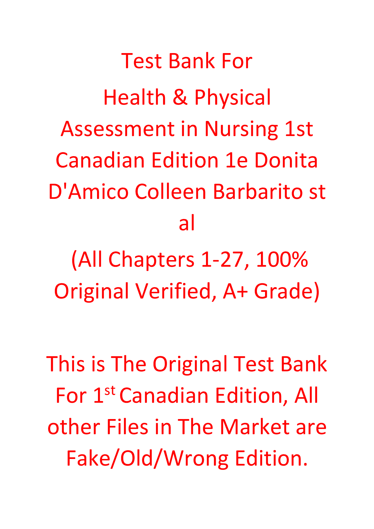 Health Care > TEST BANKS > Test Bank For Health & Physical Assessment in Nursing, 1st Canadian Edition 1e Donita D'Amico Colleen Barbarito st al