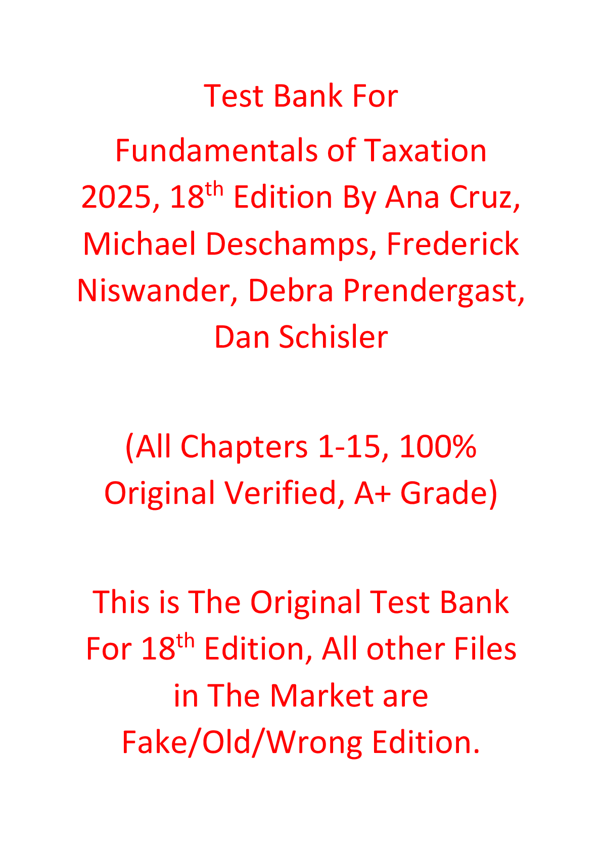Education > TEST BANKS > Test Bank For Fundamentals of Taxation 2025, 18e Ana Cruz, Michael Deschamps, Frederick Niswander, Debra Prendergast, Dan Schisler