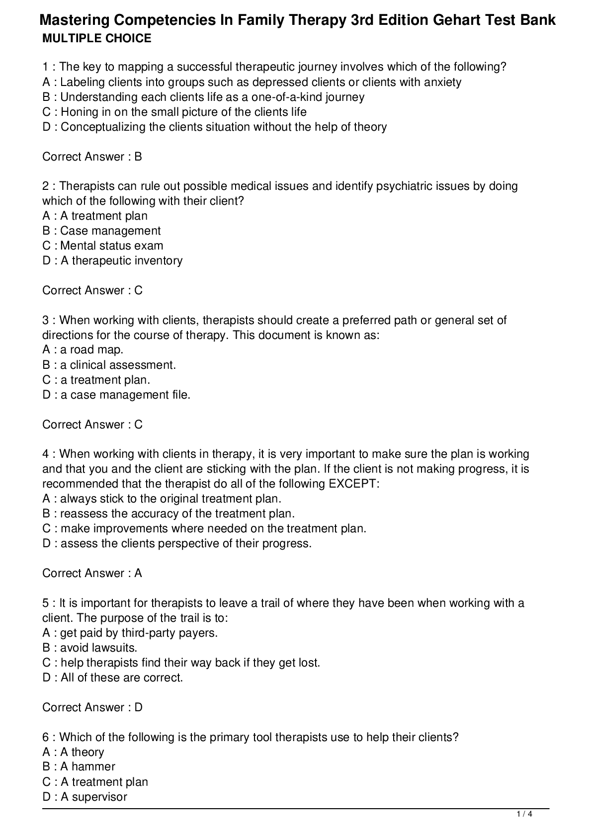 Business > TEST BANKS > Test Bank For Mastering Competencies in Family Therapy A Practical Approach to Theories and Clinical Case Documentation 4th Edition by Diane R. Gehart Chapter 1-17