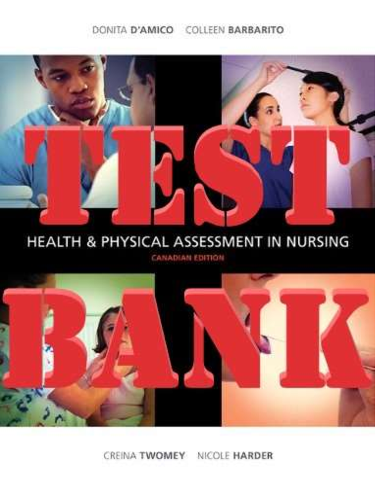 *NURSING > TEST BANKS > Health And Physical Assessment In Nursing 1st Canadian Edition By Donita D'Amico, Colleen Barbarito TEST BANK
