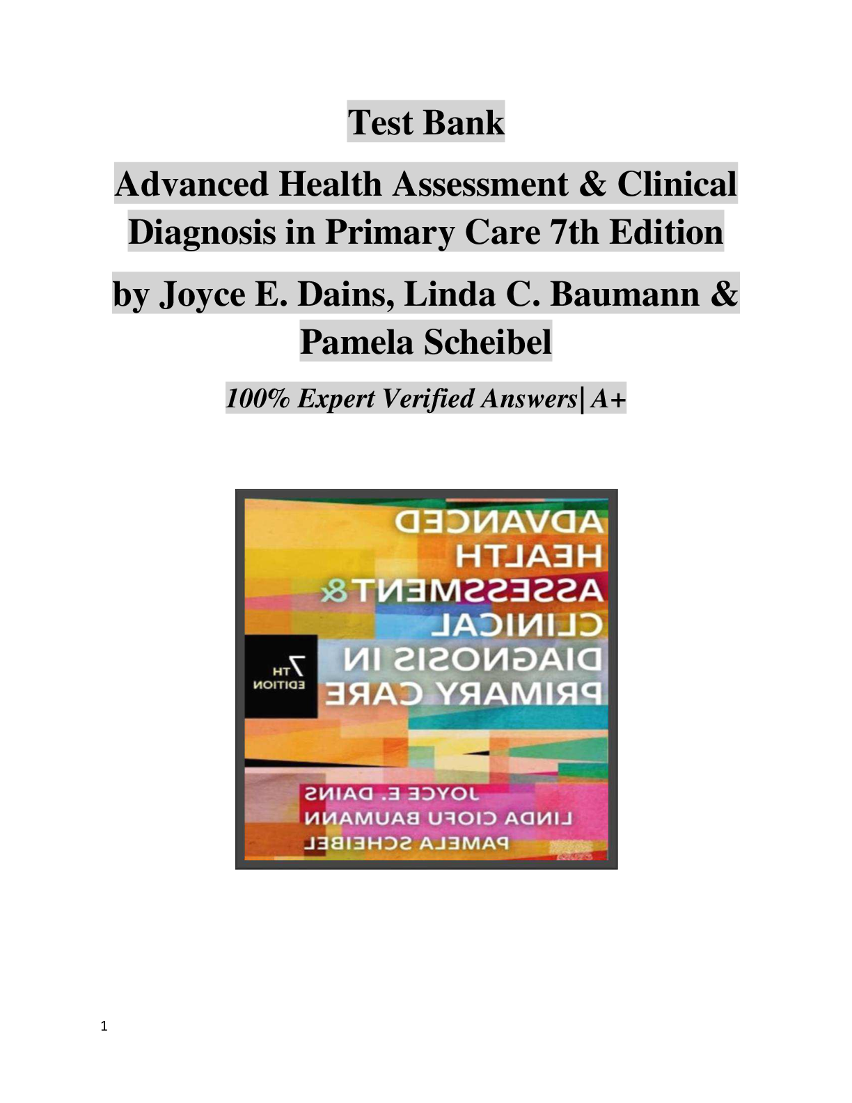 Clinical Psychology > TEST BANKS > Test Bank Advanced Health Assessment & Clinical Diagnosis in Primary Care 7th Edition by Joyce E. Dains, Linda C. Baumann & Pamela Scheibel 100% Expert Verified Answers| A+