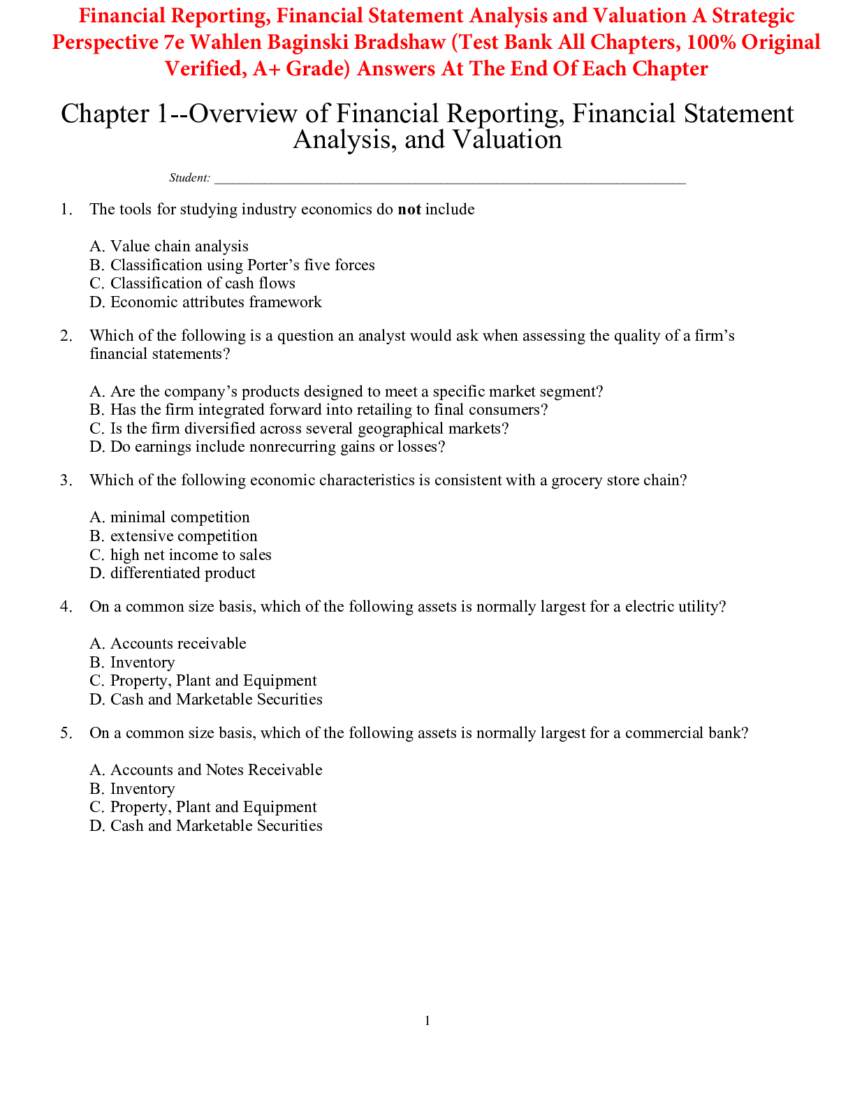 Business > TEST BANKS > Test Bank for Financial Reporting, Financial Statement Analysis and Valuation A Strategic Perspective 7th Edition By Wahlen Baginski Bradshaw (All Chapters, 100% Original Verified, A+ Grade)