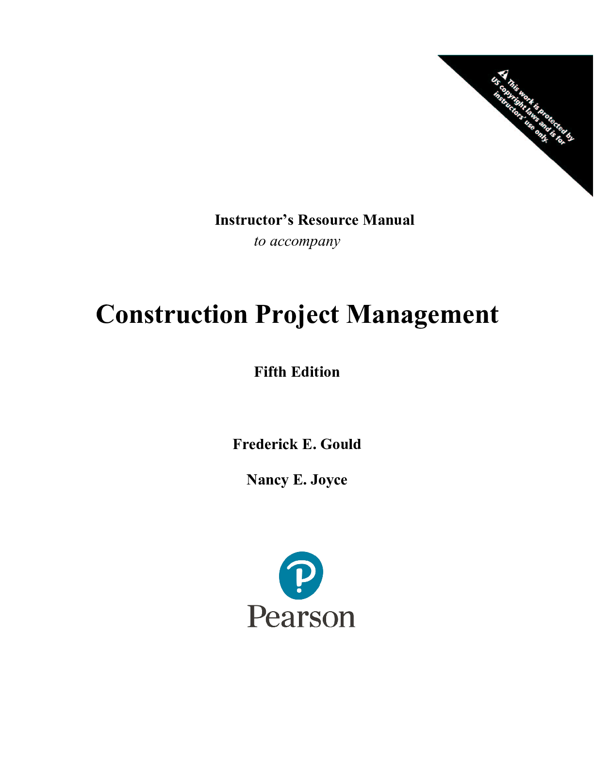Business > TEST BANKS > Solutions Manual For Construction Project Management, 5th Edition by Frederick Gould Nancy Joyce {Includes Instructor resource}