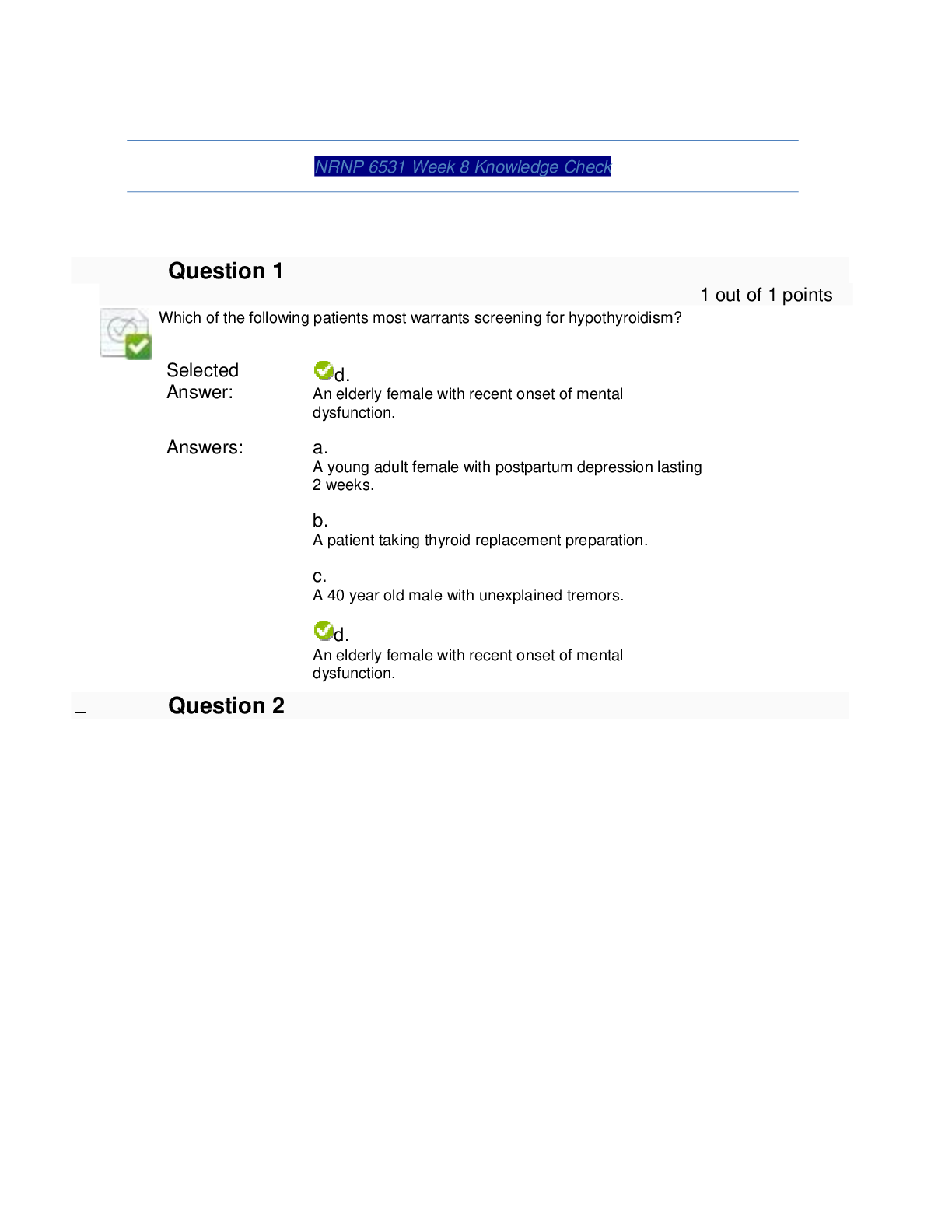 *NURSING > TEST BANKS > NRNP 6531 WEEK 8 KNOWLEDGE CHECK LATEST SOLUTION.