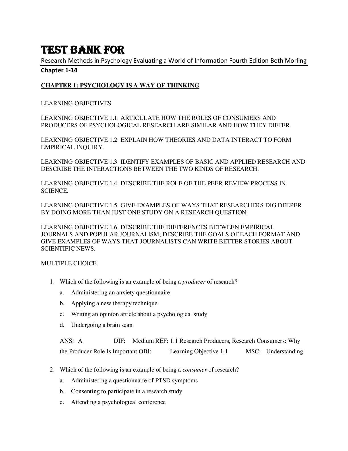 Psychology > TEST BANKS > The Latest Edition TestBank _ Research Methods in Psychology Evaluating a World of Information 3rd Edition by Beth Morling.pdf