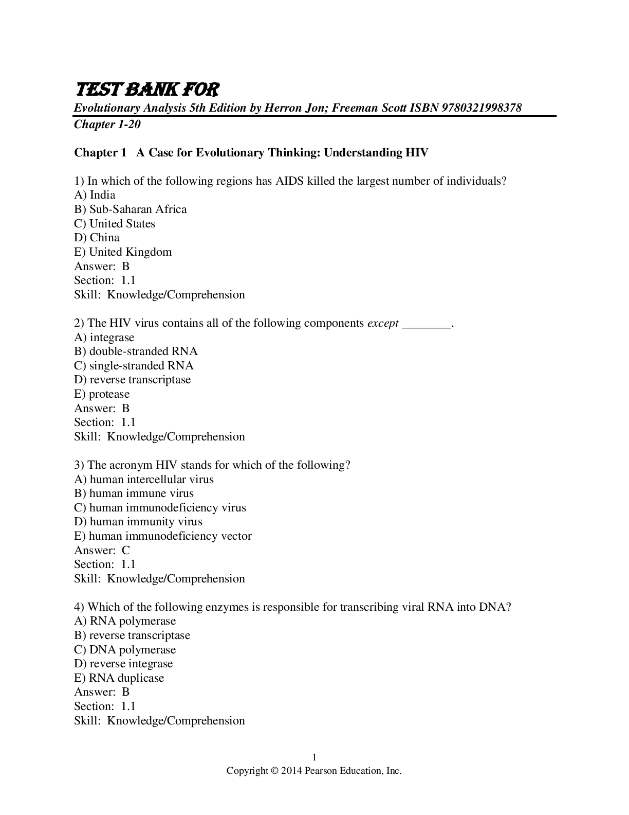 Biology > TEST BANKS > Test Bank for Evolutionary Analysis 5th Edition by Herron Jon; Freeman Scott ISBN 9780321998378 Chapter 1-20