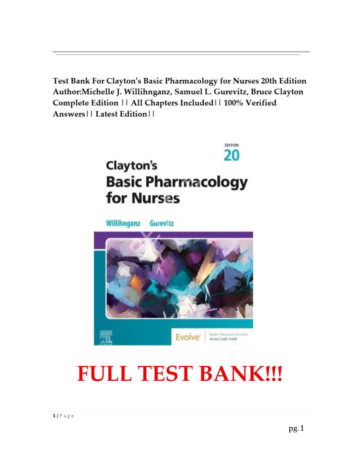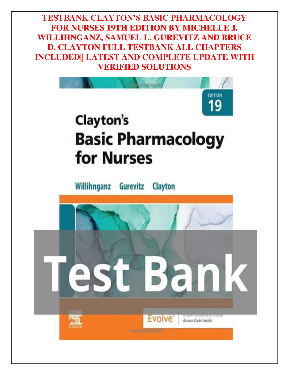 Pharmacology > TEST BANKS > TESTBANK CLAYTON’S BASIC PHARMACOLOGY FOR NURSES 19TH EDITION BY MICHELLE J. WILLIHNGANZ, SAMUEL L. GUREVITZ AND BRUCE D. CLAYTON FULL TESTBANK ALL CHAPTERS INCLUDED|| LATEST AND COMPLETE UPDATE WITH VERIFIED SOLUTIONS