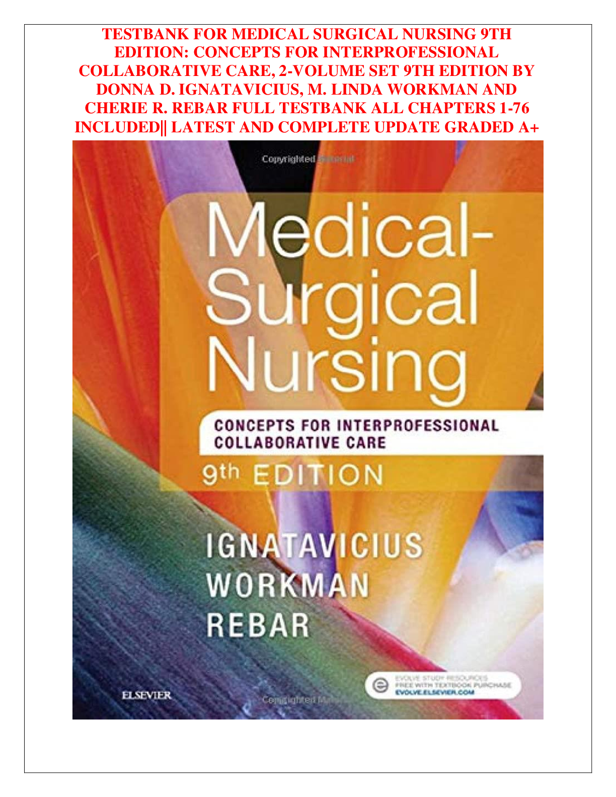 *NURSING > TEST BANKS > TESTBANK FOR MEDICAL SURGICAL NURSING 9TH EDITION: CONCEPTS FOR INTERPROFESSIONAL COLLABORATIVE CARE, 2-VOLUME SET 9TH EDITION BY DONNA D. IGNATAVICIUS, M. LINDA WORKMAN AND CHERIE R. REBAR FULL TESTBANK ALL CHAPTERS 1-76 INCLUDED|| LATEST AND COMPLETE UPDATE GRADED A+