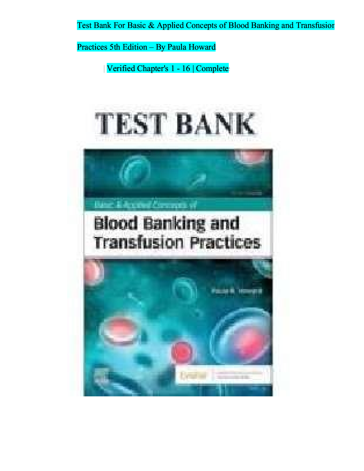 *NURSING > TEST BANKS > Test Bank Basic Applied Concepts of Blood Banking Transfusion Practices 5th Edition