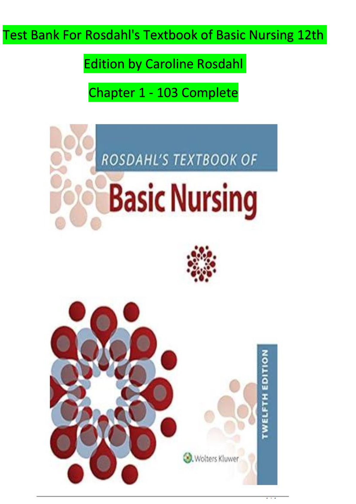 *NURSING > TEST BANKS > Test Bank For Rosdahl's Textbook of Basic Nursing 12th Edition by Caroline Rosdahl Chapter 1 - 103 Complete
