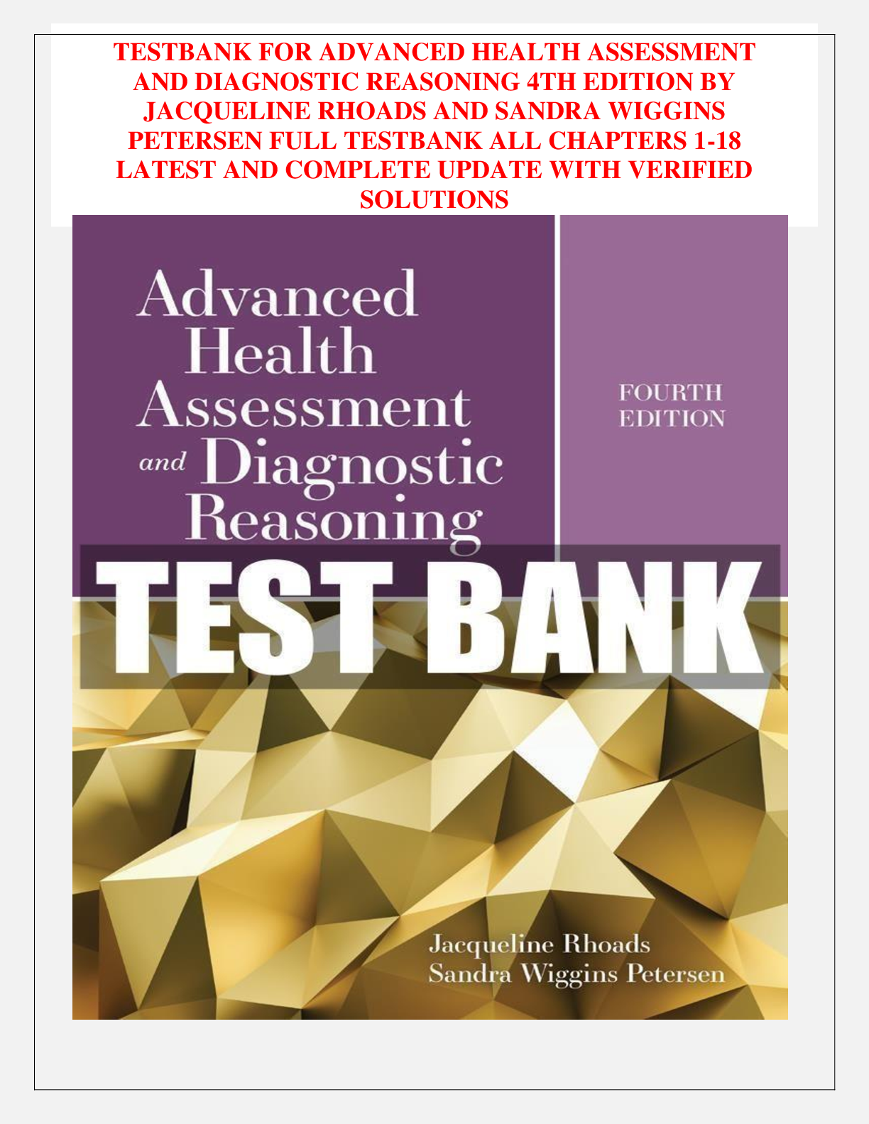 *NURSING > TEST BANKS > TESTBANK FOR ADVANCED HEALTH ASSESSMENT AND DIAGNOSTIC REASONING 4TH EDITION BY JACQUELINE RHOADS AND SANDRA WIGGINS PETERSEN FULL TESTBANK ALL CHAPTERS 1-18 LATEST AND COMPLETE UPDATE WITH VERIFIED SOLUTIONS