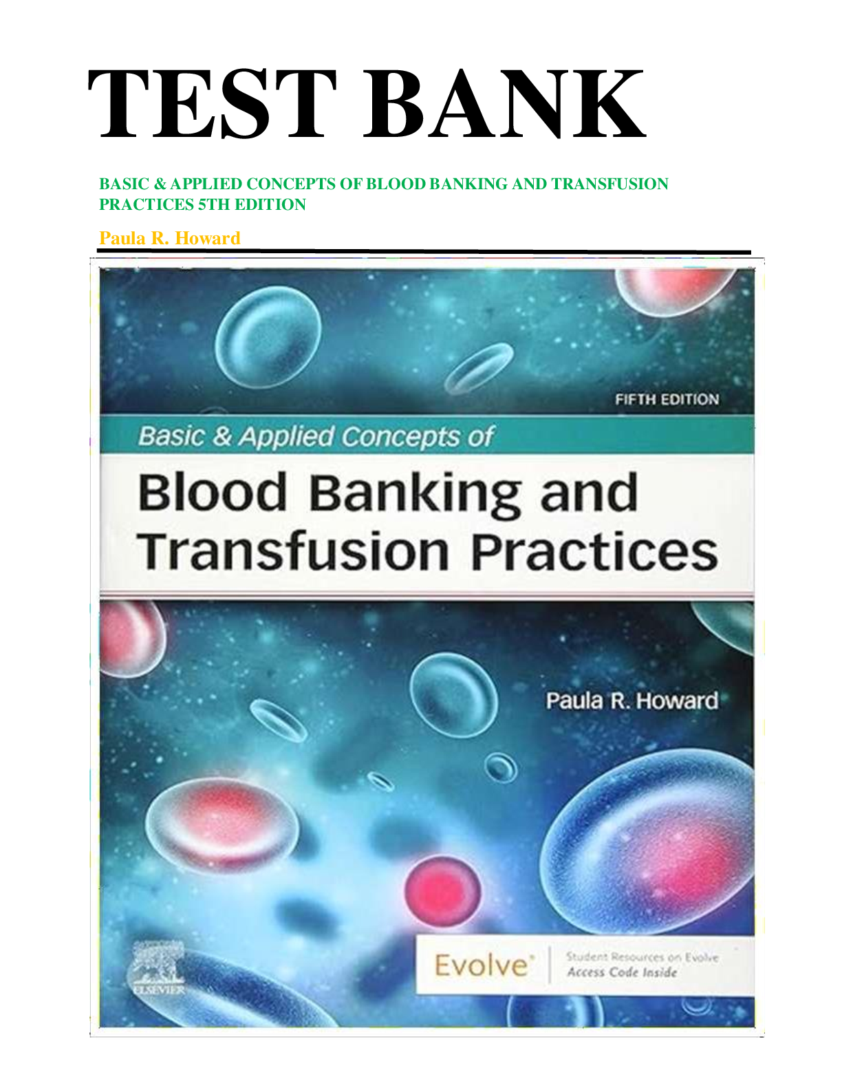 *NURSING > TEST BANKS > TEST BANK BASIC & APPLIED CONCEPTS OF BLOOD BANKING AND TRANSFUSION PRACTICES 5TH EDITION Paula R. Howard