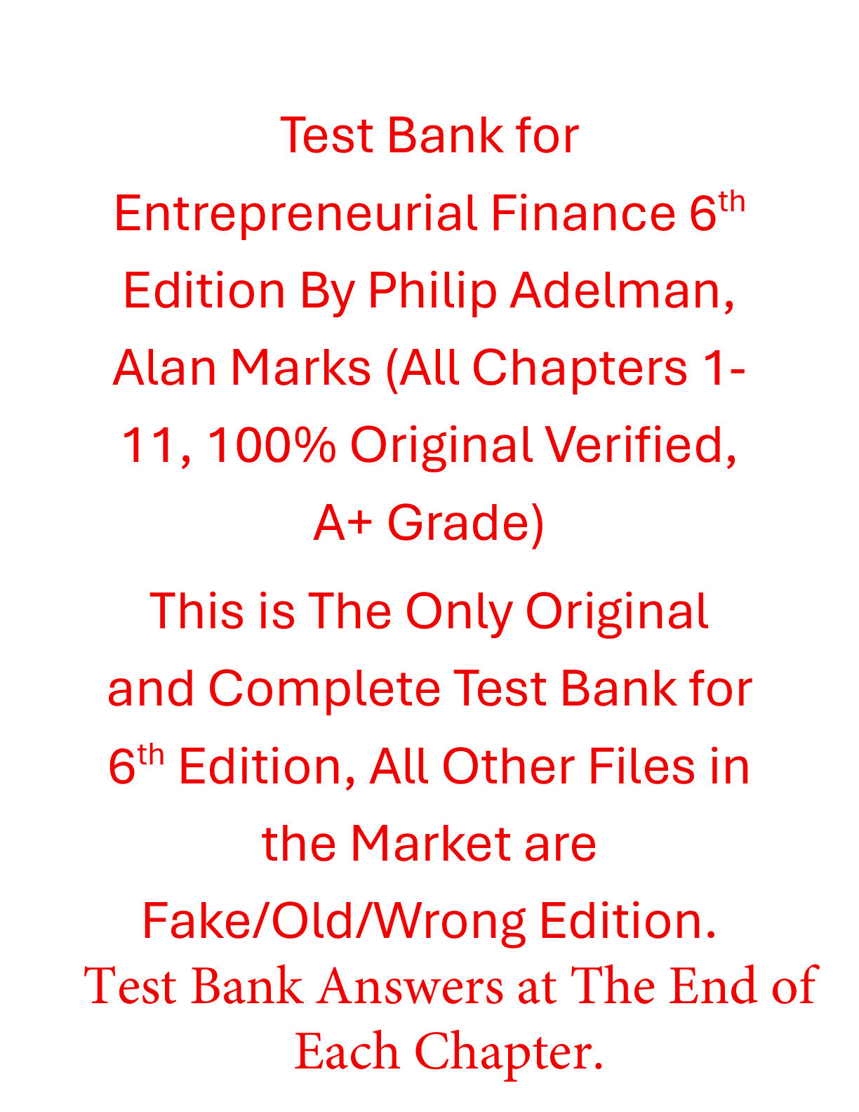 Finance > TEST BANKS > Test Bank for Entrepreneurial Finance 6th Edition By Philip Adelman, Alan Marks