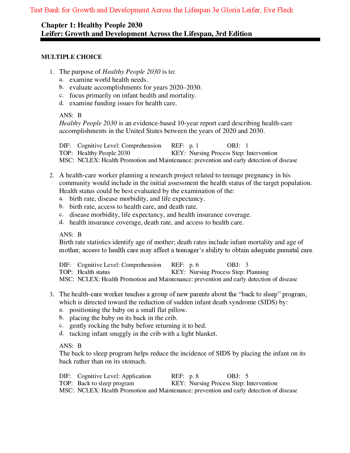 NURSING PEDIATRICS > TEST BANKS > Test Bank for Growth and Development Across the Lifespan, 3rd Edition by Leifer & Fleck | All Chapters 1-16 | Complete Questions & Answers | Downloadable PDF