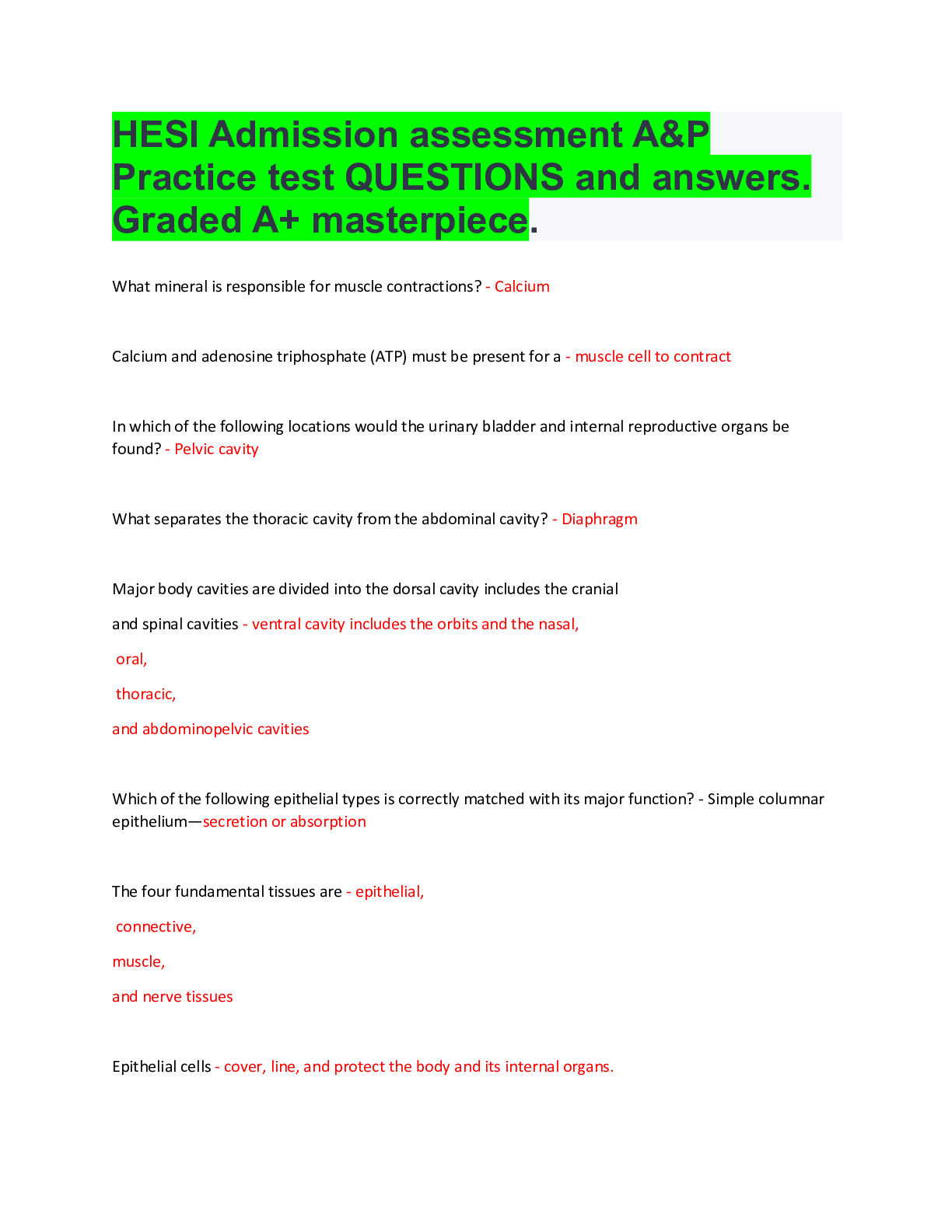*NURSING > HESI > HESI Admission assessment A&P Practice test QUESTIONS and answers. Graded A+ masterpiece.