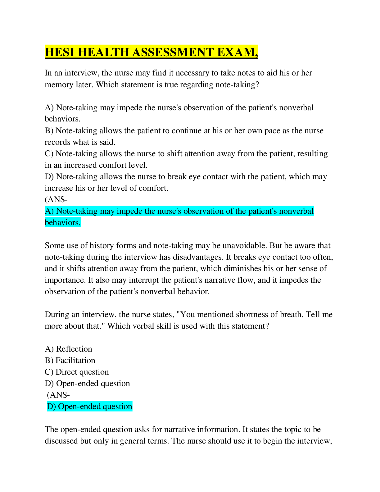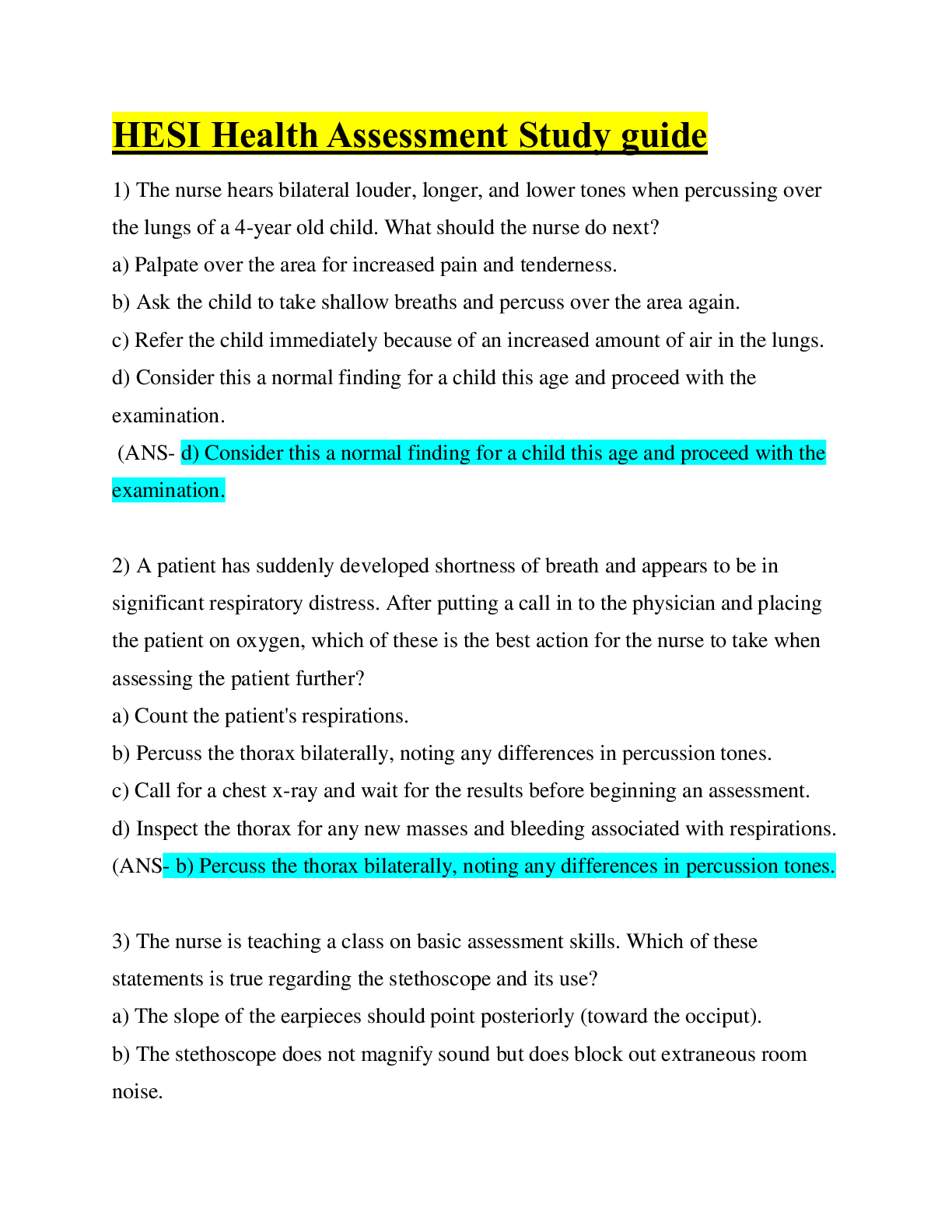 Health Care > HESI > HESI Health Assessment Study guide/ Questions & Answers/Latest Solution